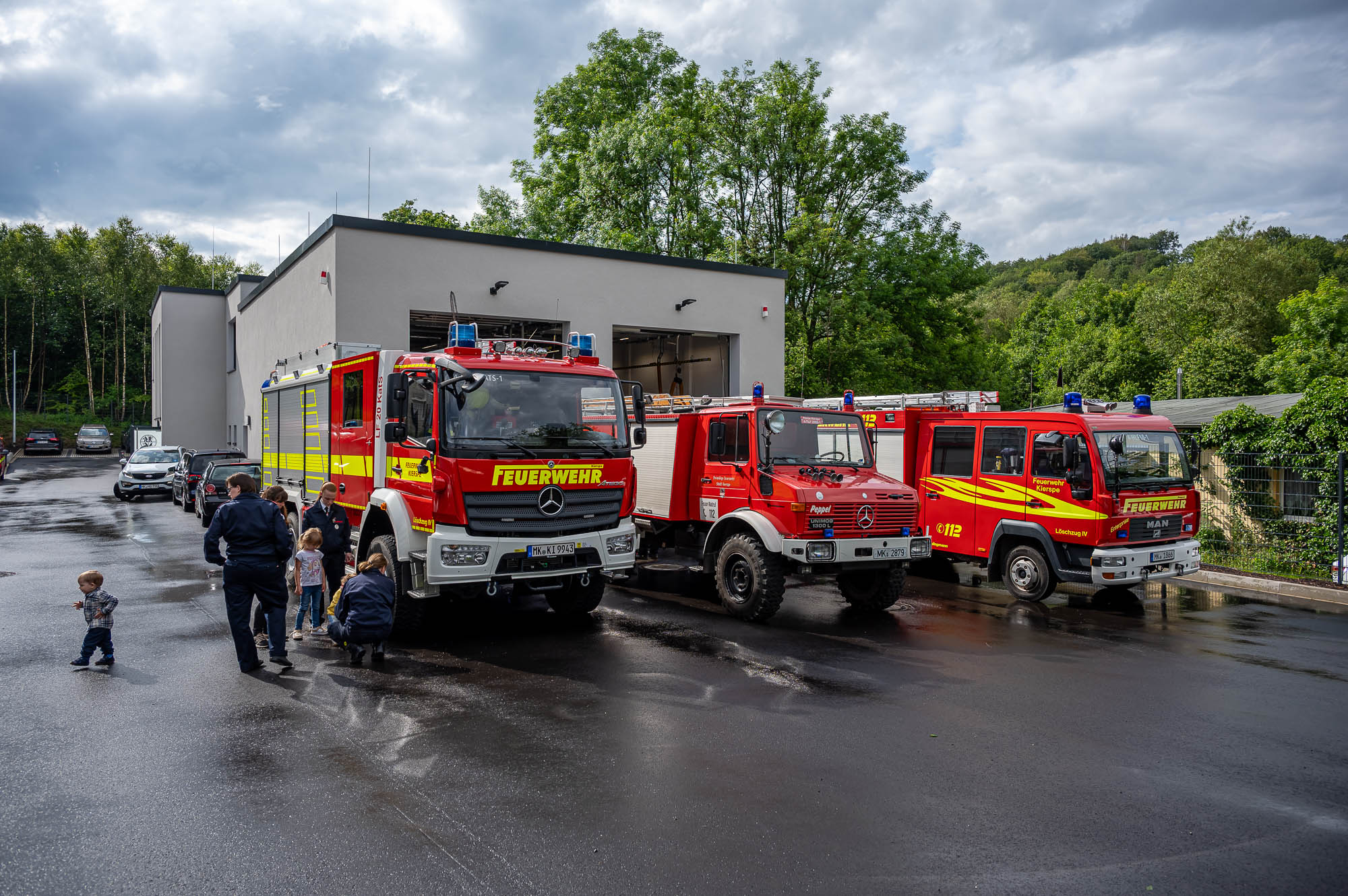 Natürlich kamen zu der Einweihung nicht nur die freiwilligen Feuerwehrleute des Löschzugs 4, zu dem die Löschgruppe Vollme gehört, sondern Kameradinenn und Kameraden aller Einheiten der Kiersper Wehr. Zahlreiche Vertreter aus Rat und Verwaltung inspizierten bei dieser Gelegenheit den neuen Standort, der eine drastische Verbesserung gegenüber dem bisherigen Gerätehaus unterhalb der Jubachtalsperre darstellt. Dass in dessen unmittelbarer Nähe ein geeignetes, rund 1.700 Quadratmeter großes Grundstück gefunden werden konnte, wird als Glücksfall wahrgenommen. Immerhin stellt bereits die Suche nach der passenden Lage ein massives Hindernis für den Neubau etlicher Gerätehäuser im Märkischen Kreis dar.