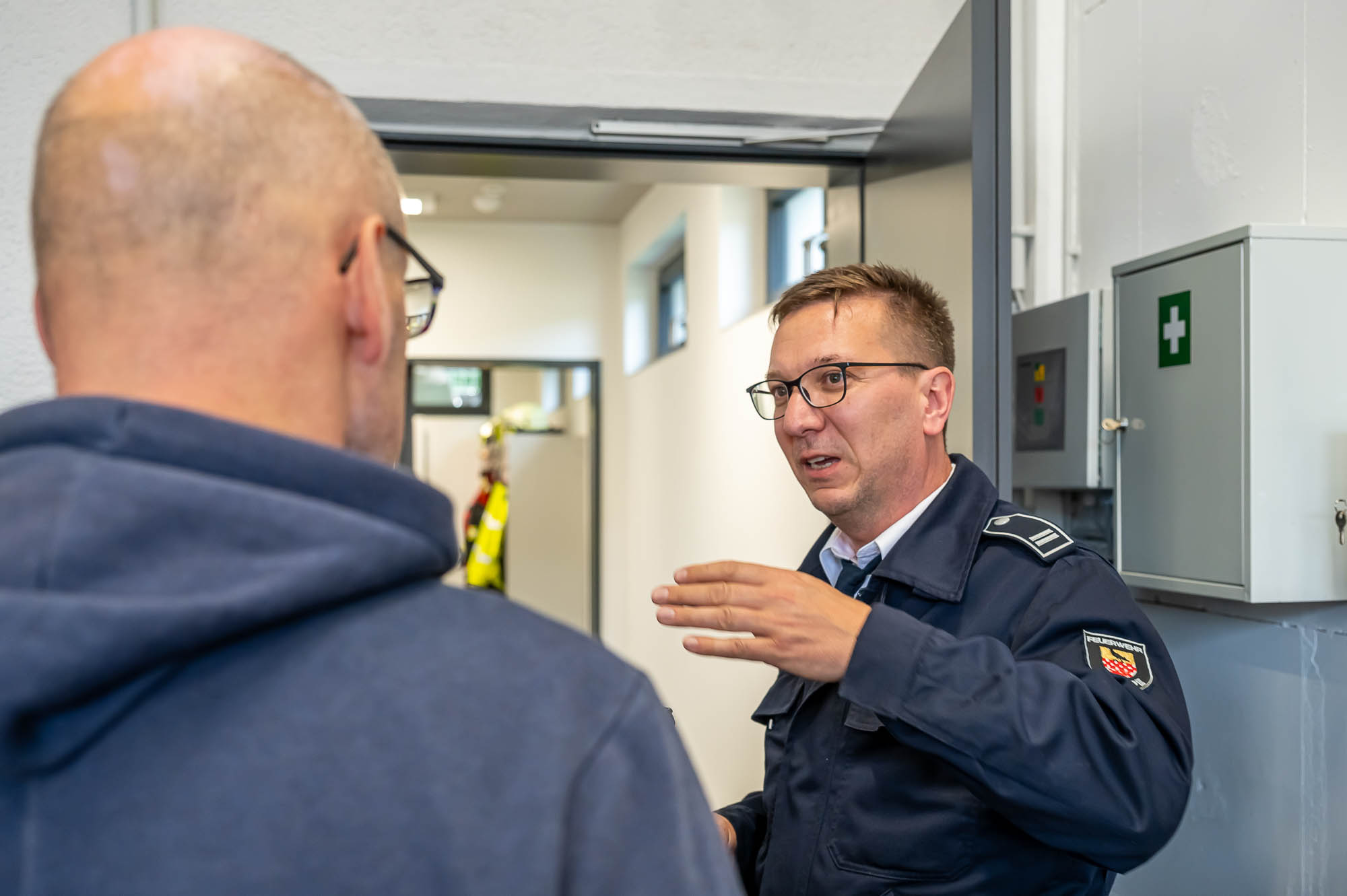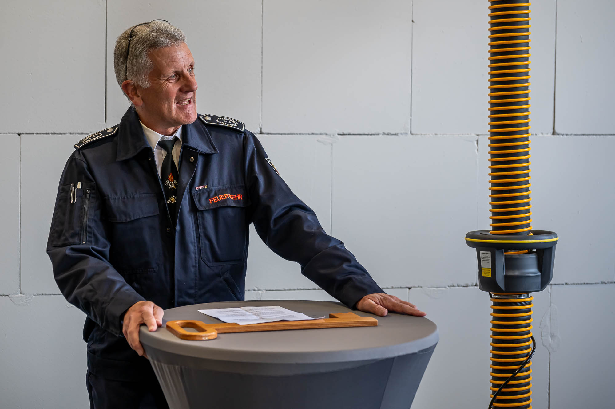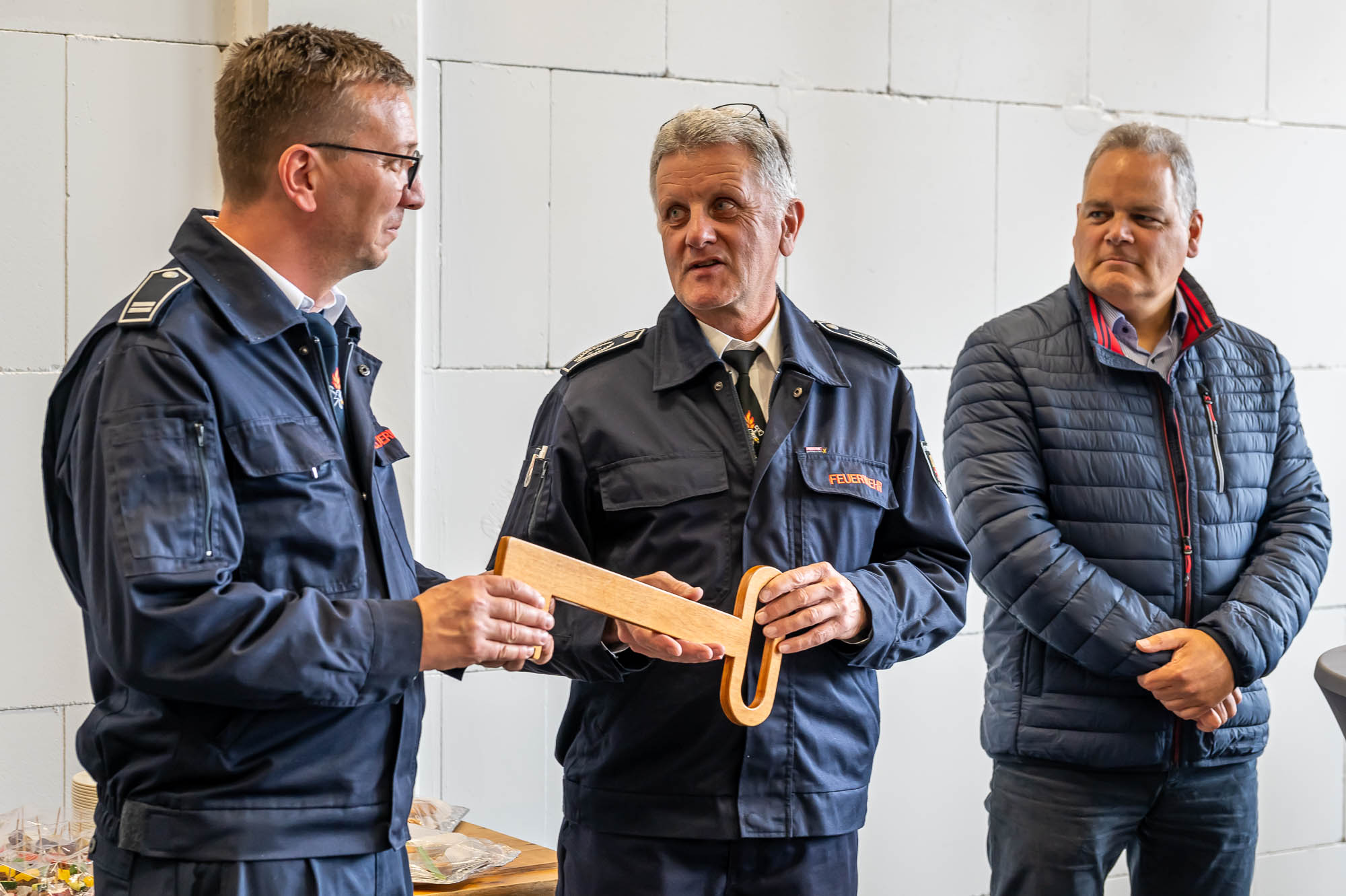 Mit Stefan Czarkowski hat die Stadt Kierspe einen Architekten beauftragt, der nicht nur durch bisherige Projekte Expertise bei der Planung und Gestaltung von Feuerwehrgerätehäusern vorweisen kann, sondern als langjährlicher Leiter der Halveraner Wehr die Bedürfnisse von Feuerwehrleuten bestens kennt. Auch Karsten Gembruch und seine Löschgruppe hatten sich im Vorfeld mit Ideen und konkreten Vorstellungen eingebracht, und insbesondere in der Endphase viel Eigenleistung eingebracht. Das hat auch Wehrleiter Budde in seiner Ansprache thematisiert: “Ein langersehnter Wunsch ist auch mit der Fertigstellung funktionaler Räume zur Ausbildung in Erfüllung gegangen.” Budde machte deutlich, dass der Neubau vernünftige Rahmenbedingungen für die Aus-und Fortbildung innerhalb der Feuerwehr dient, aber auch die Attraktivität dieses Ehrenamtes stärkt. Nicht nur bei der Neugewinnung von freiwilligen Feuerwehrleuten, sondern auch bei der Arbeit selbst. Dass das alte Gerätehaus am Jubachweg diesen Anforderungen alles andere als gerecht wird, war schon vor einigen Jahren klar. Dass die Realisierung des Neubaus nicht nur bei der Bauausführung, sondern bereits vorher in den Instanzen von Politik und Verwaltung, vergleichsweise zügig voranging, wurde von allen Beteiligten gelobt. Budde dankte allen Projektbeteiligten für ihren Einsatz, insbesondere auch den Wehrleuten selbst, dem Förderverein der Löschgruppe und vielen weiteren Helfern.