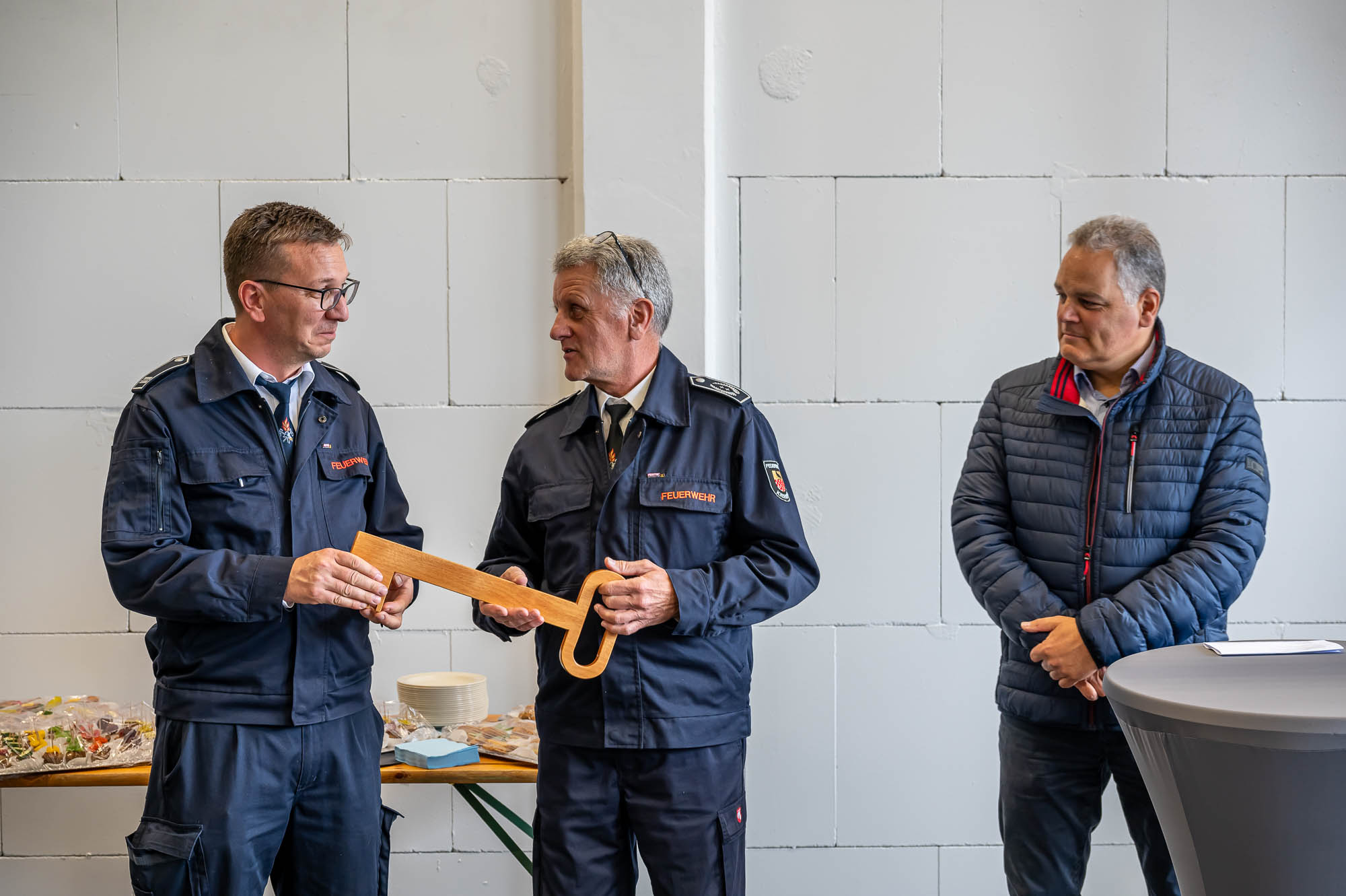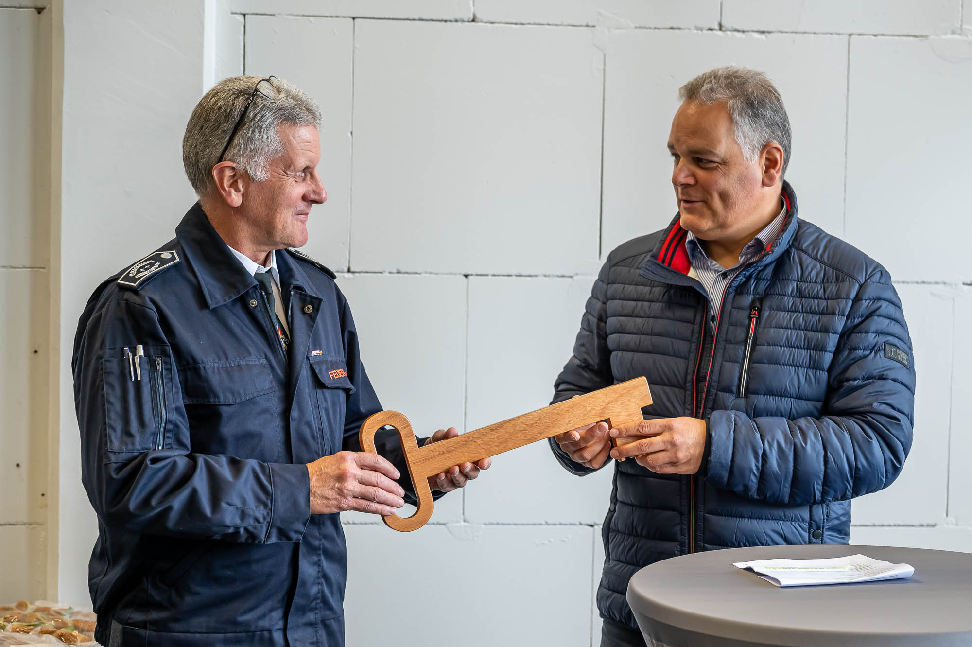 Wehrleiter Budde reichte den symbolischen Schlüssel direkt an Löschgruppenführer Gembruch weiter. Fotos: Markus Klümper