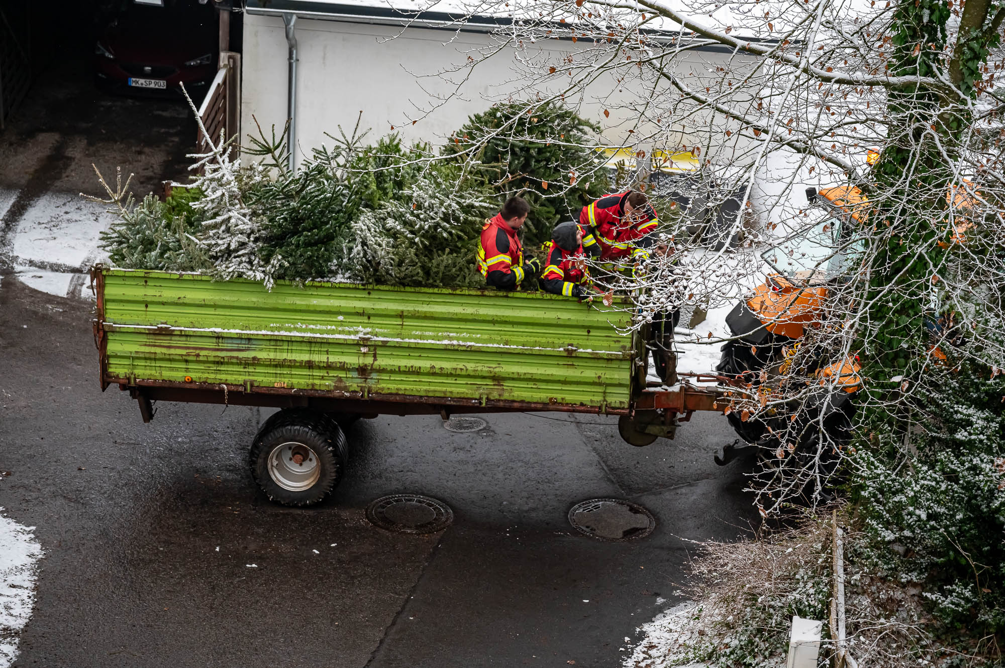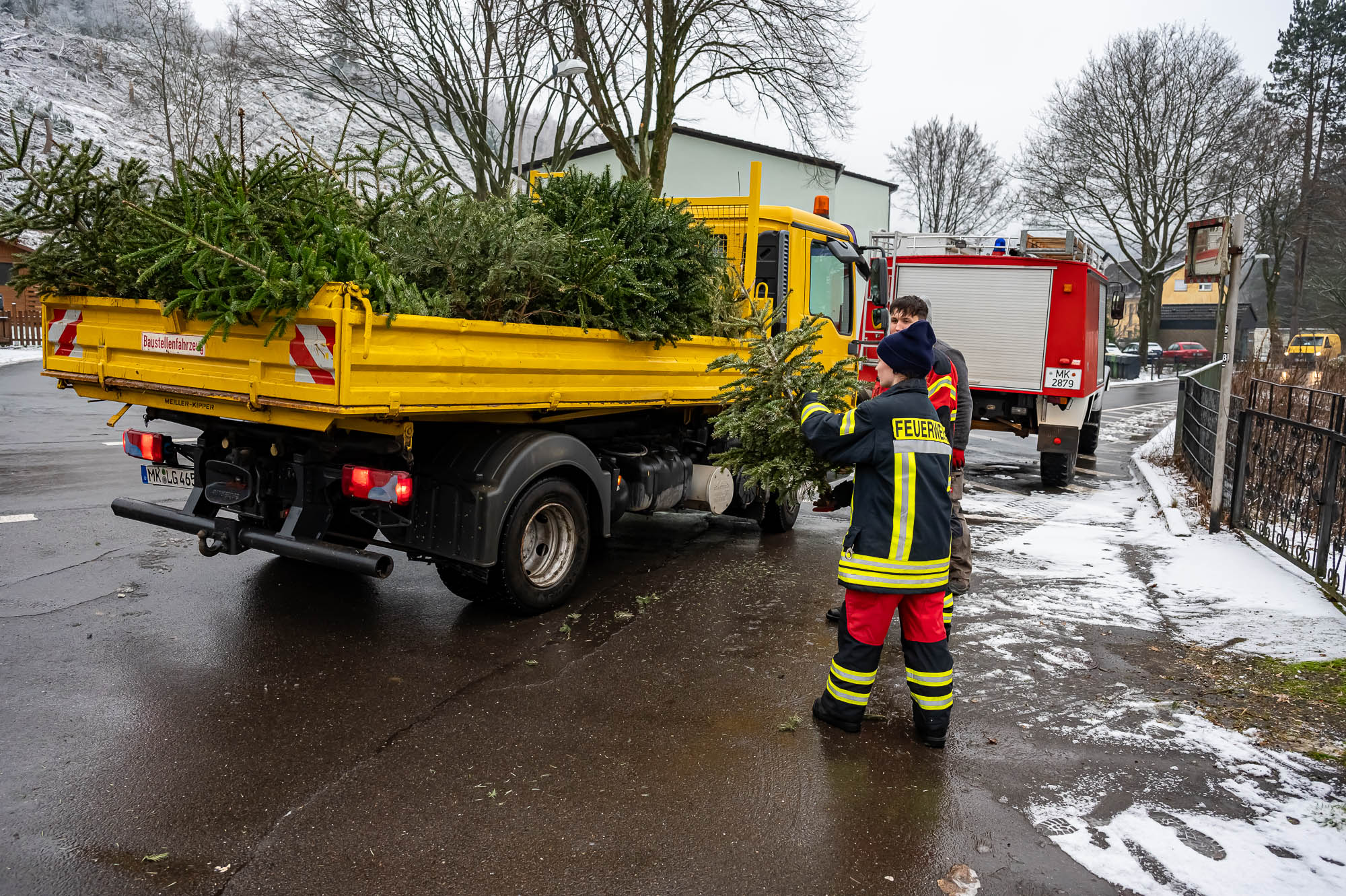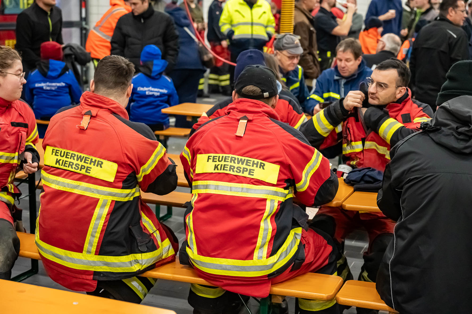 KIERSPE (mk) Die Weihnachtsbaumsammlung der Kiersper Feuerwehr war auch in diesem Jahr ein großes Event. Streng genommen eines der “Blaulichtjugend”, also der Jugendfeuerwehr, doch angesichts der nötigen Logistik waren auch viele Erwachsene aus allem Kiersper Löschzügen mit dabei. Dazu etliche “zivile” Helfer, so dass man sich angesichts der Fahrzeuge rund um das Gerätehaus Stadtmitte am Samstagmorgen, 13. Januar, leicht an eine der zahlreichen Demos erinnert fühlte, die aktuell stattfinden.