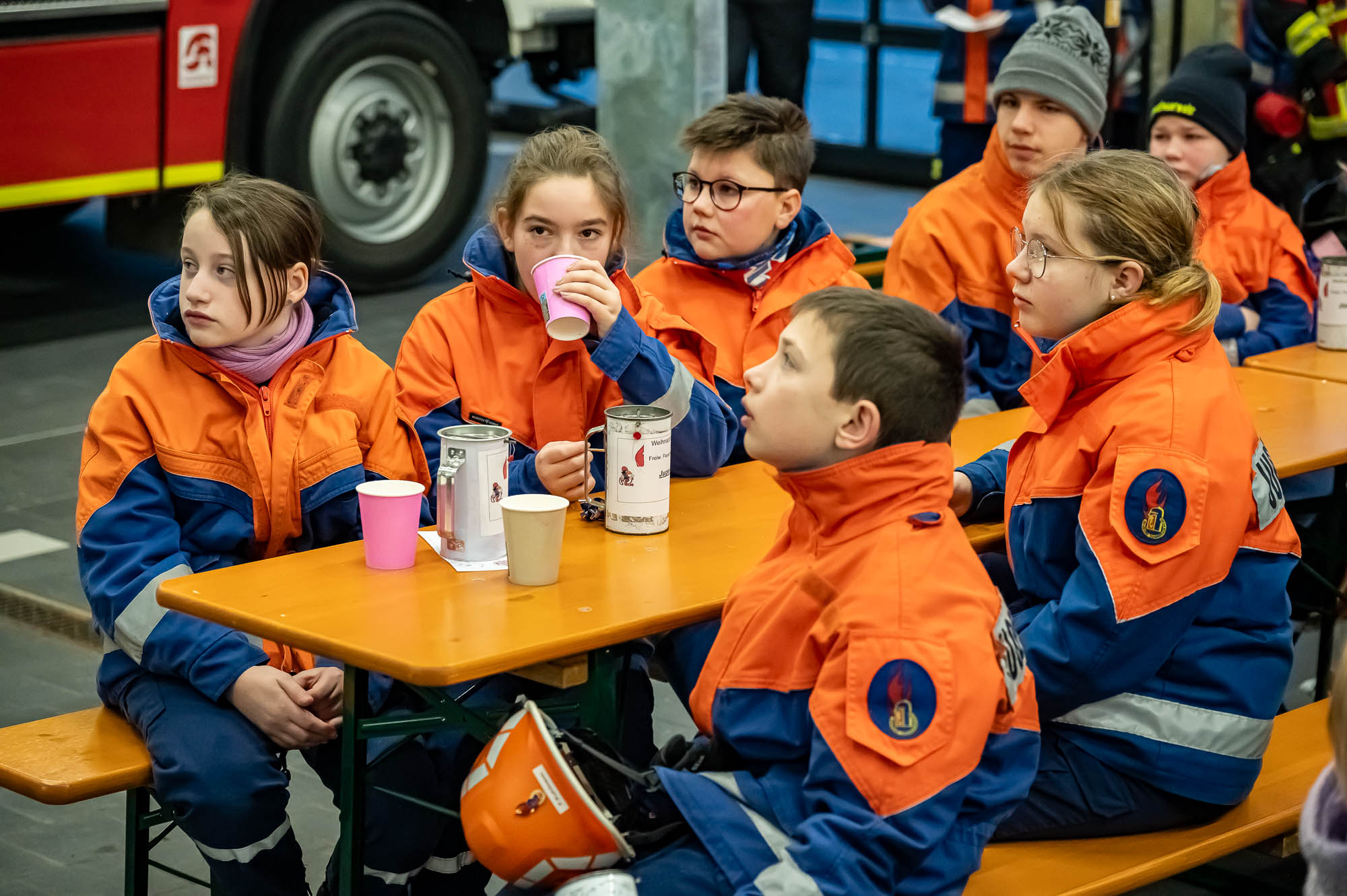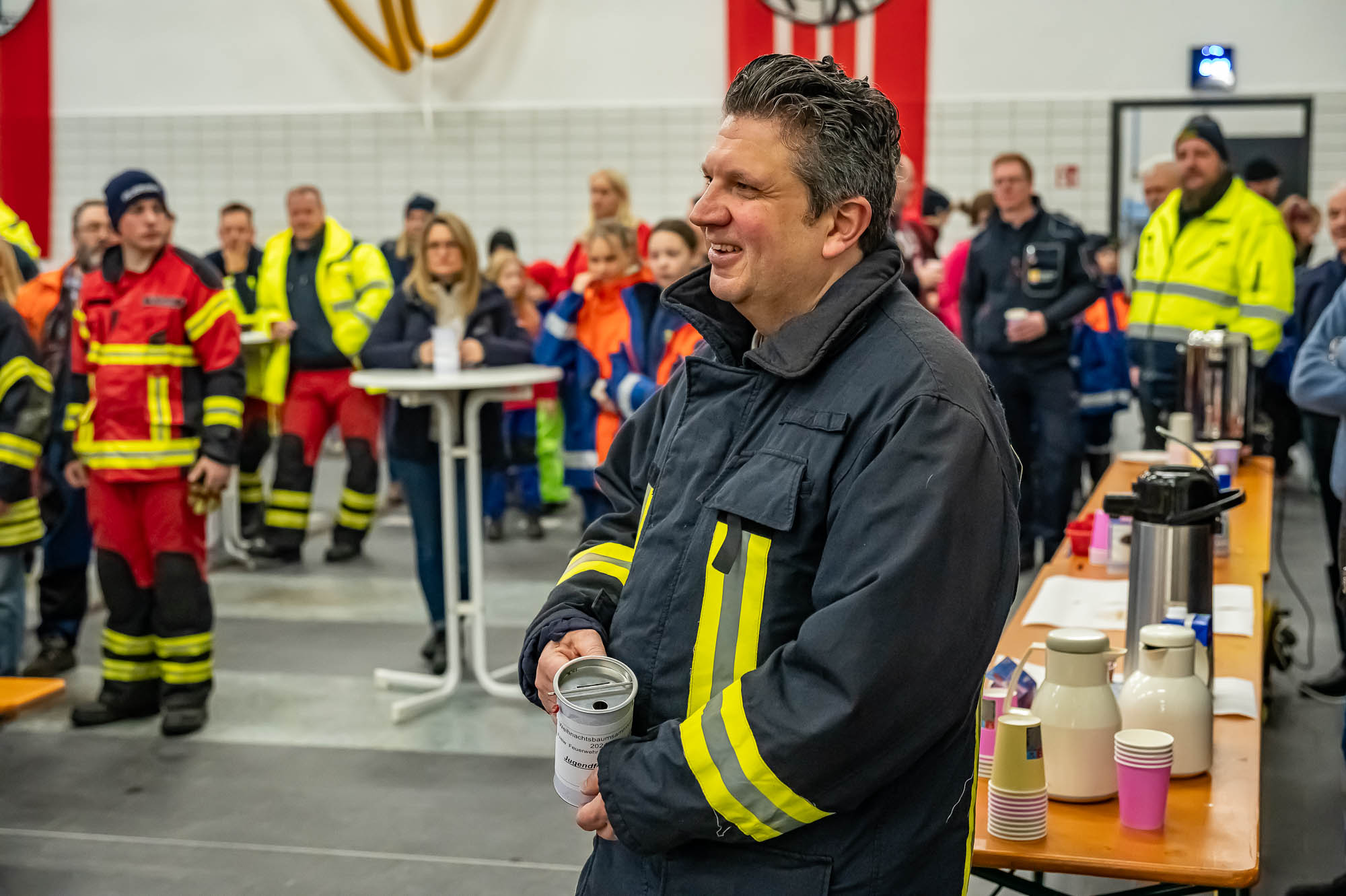 Für die fleissigen Helfer gab es nach der Rückkehr ins Gerätehaus noch ein leckeres Mittagessen: Auf sie warteten eine deftige Erbsensuppe, Bockwürstchen und Brötchen. Bereits das gemeinsame Frühstück vor dem Aufbrechen am Morgen zeigte: Die Weihnachtsbaumsammlung ist mehr als eine “Abholtour”: Es ist eine gesellige Veranstaltung, bei der alle Mitwirkenden eine Menge Spaß hatten! Die Hauptaufgabe der Feuerwehr wurde natürlich nicht vernachlässigt: Eine Truppe stand für etwaige Einsätze bereit und hätte sofort ausrücken können. Dazu kam es aber glücklicherweise nicht!