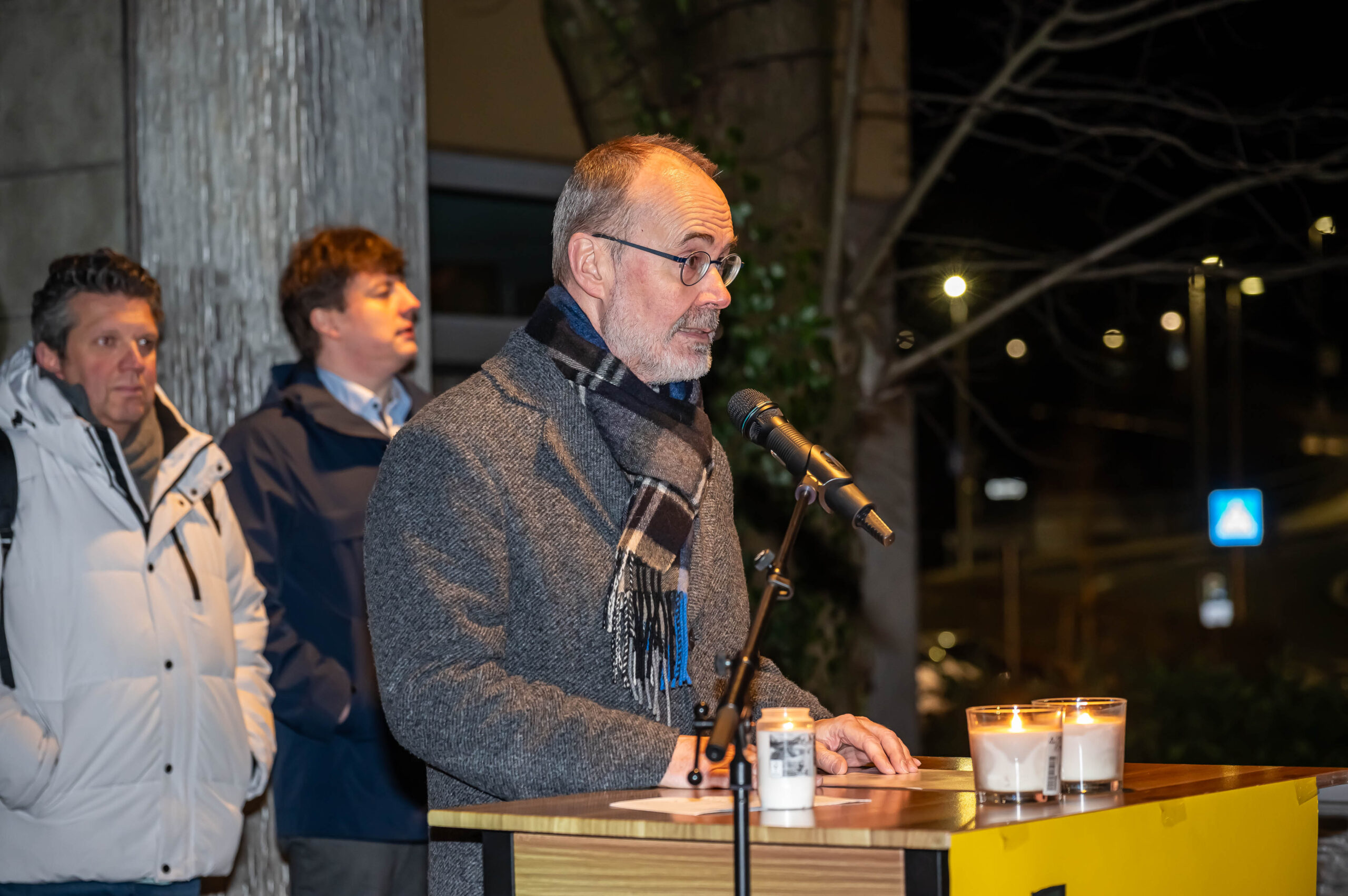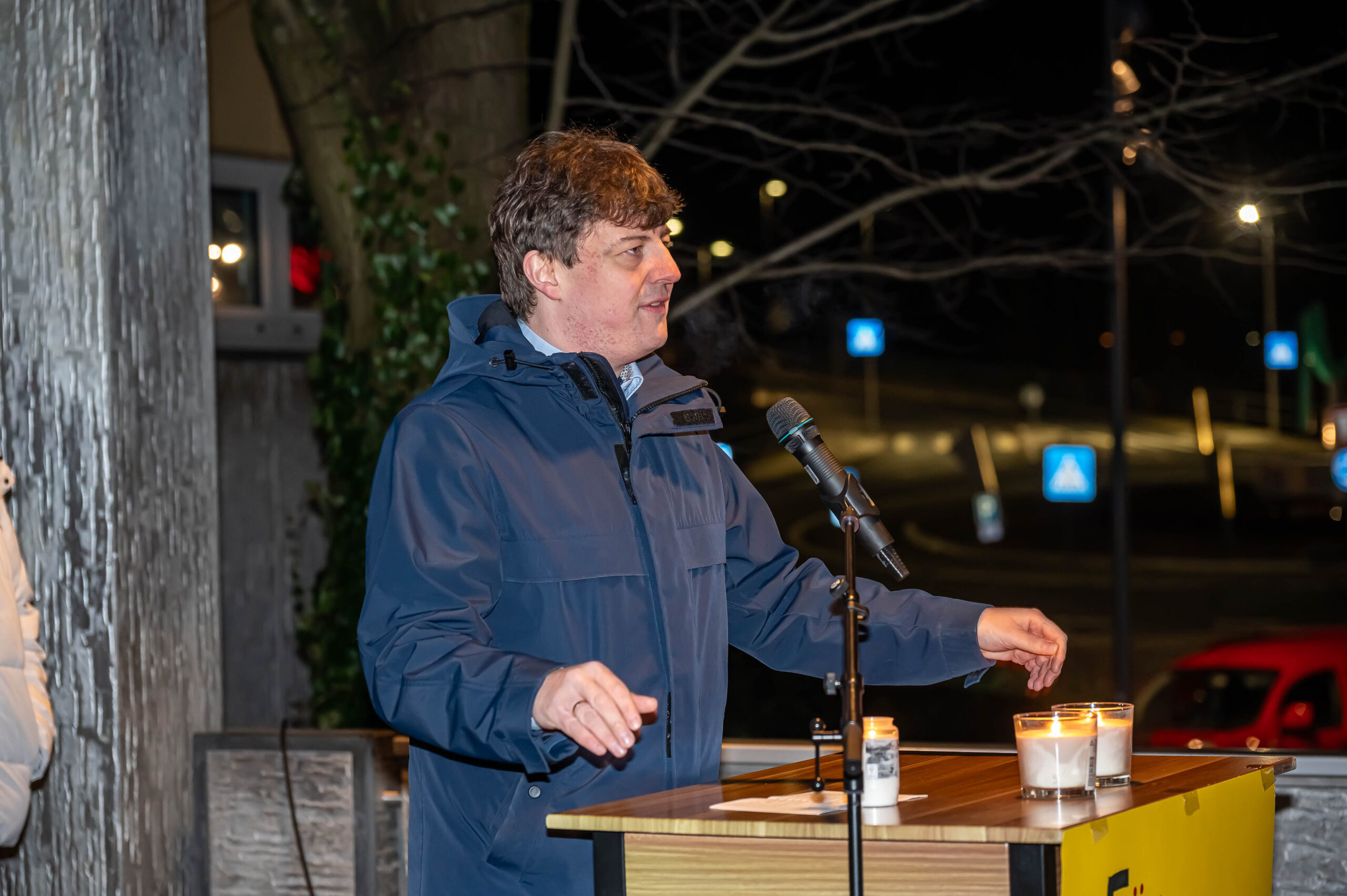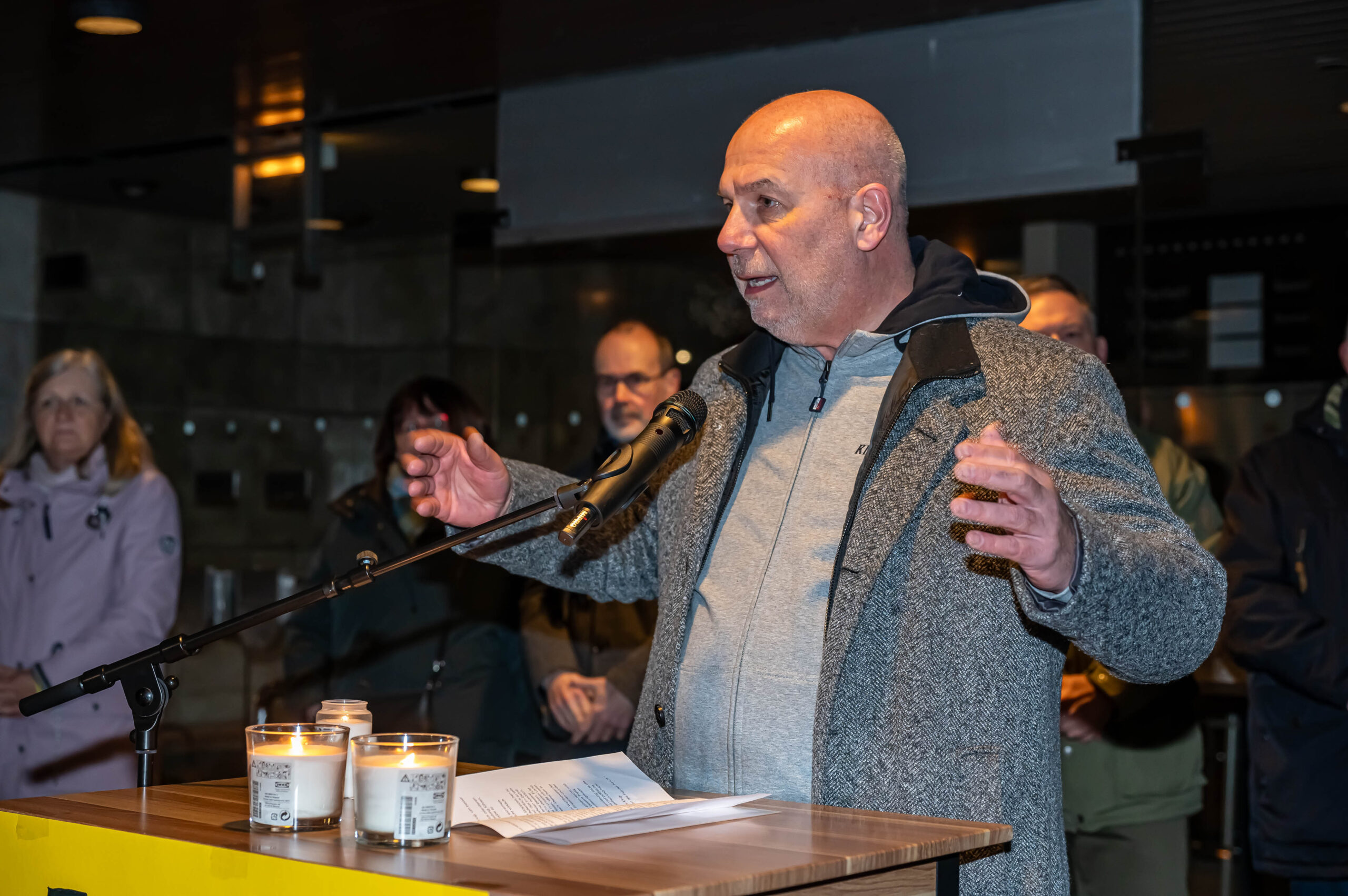 Für Bürgermeister Jan Nesselrath, der zunächst die versammelten Menschen um ein Gedenken an die dramatischen Ereignisse vom Skater-Platz bat, war die Beteiligung selbstverständlich. In seiner Ansprache erklärte Nesselrath, er sei zum einen als Bürgermeister hergekommen, “zum anderen auch als Bürger dieser Stadt und als Mensch.” Ihm geht es um Mitmenschlichkeit, um Demokratie und um Freiheit. Demokratische Grundwerte, die er in Gefahr sieht: “Grenzen im Sagen und Handeln werden immer offen verschoben, Extreme werden salonfähig”, so das Oberhaupt der Stadt Meinerzhagen. Sein Appell: “Machen Sie von Ihrem Wahlrecht gebrauch!”
