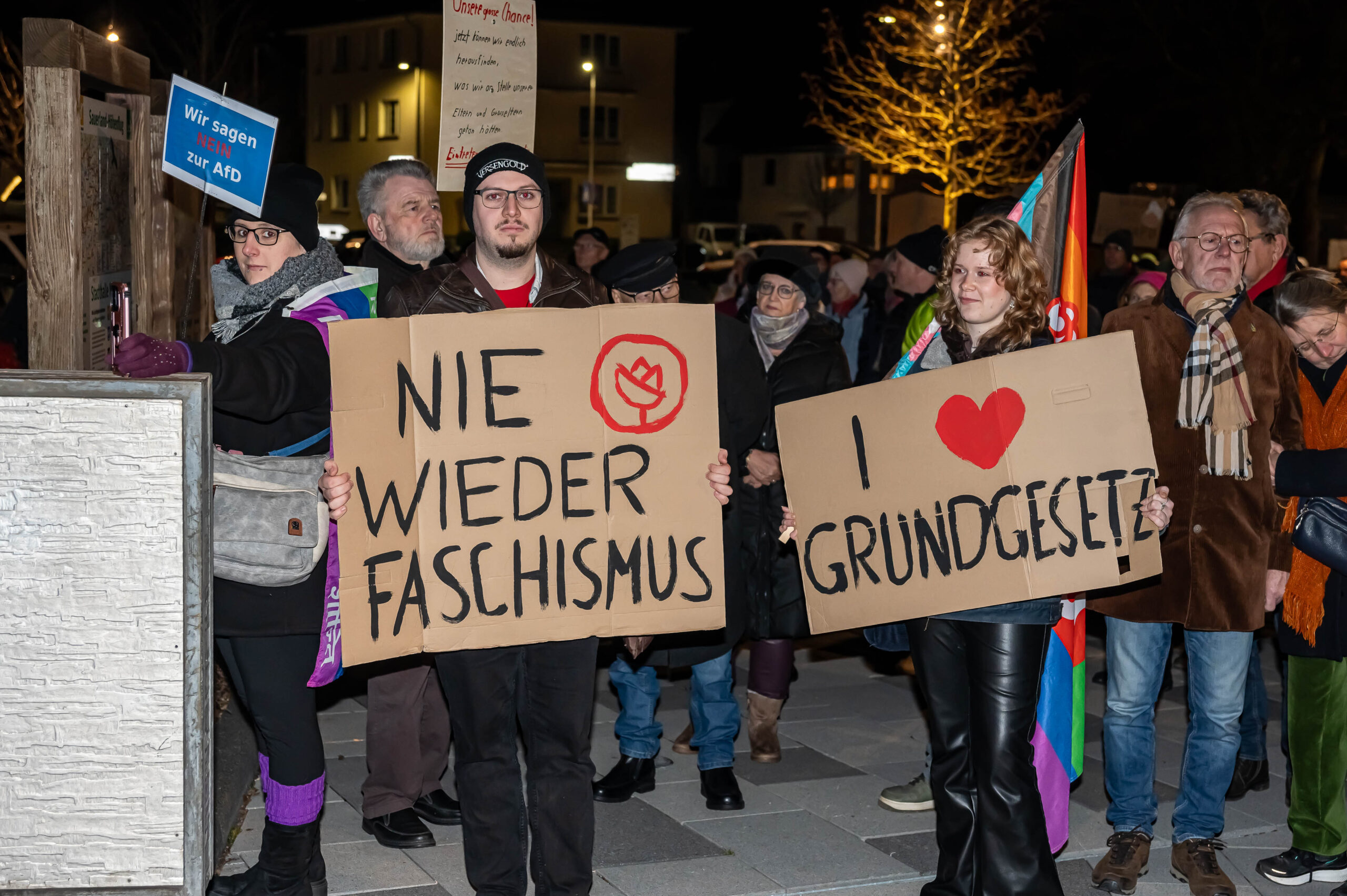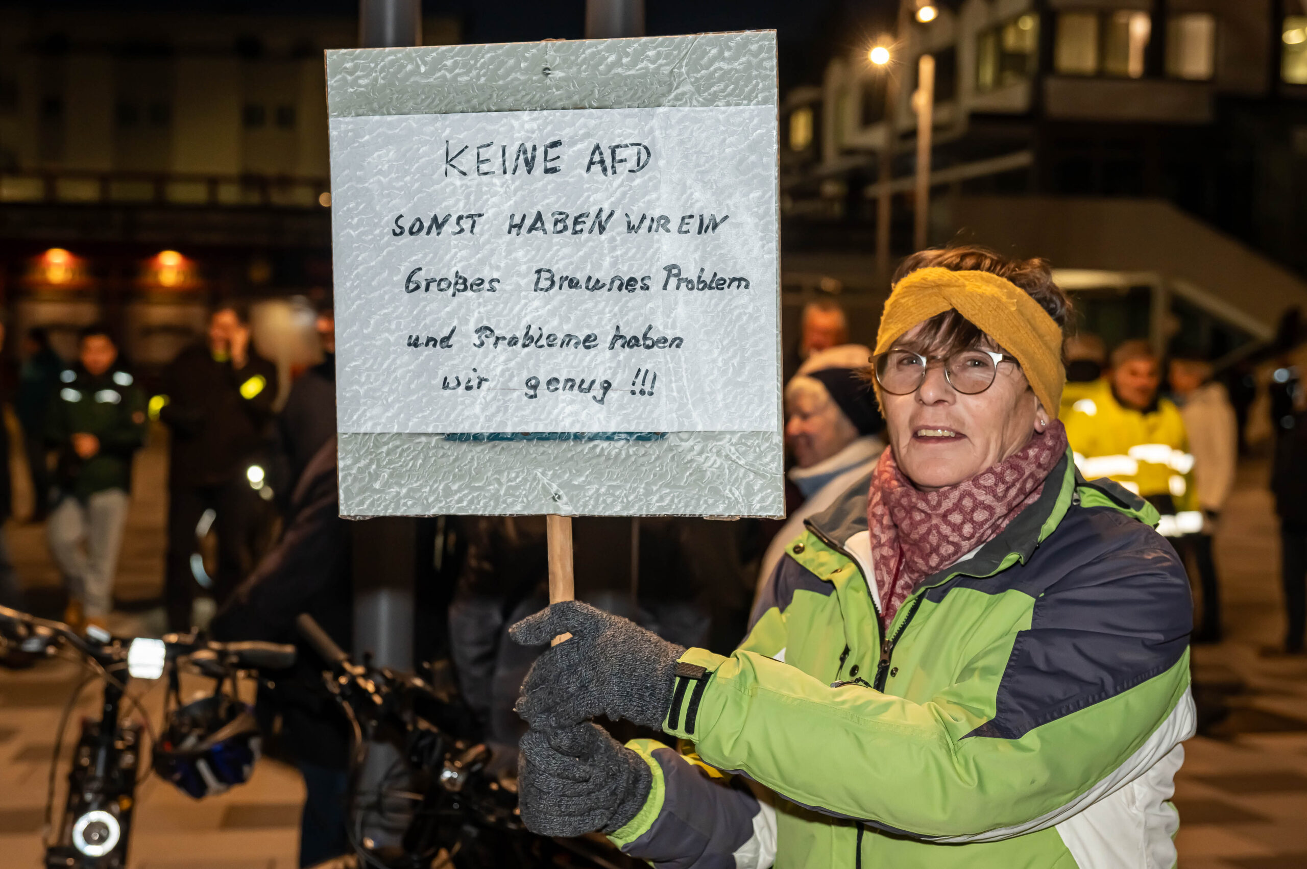 Christina Först (Initiative Stolpersteine) mahnte an die Folgen, wenn Faschisten in Deutschland zuviel Macht bekämen. Sie erinnerte an rechtsextremistische Anschläge wie in Mölln oder Solingen. Holocaust-Leugnern begegnet Först mit aktueller Umgangssprache: “Auschwitz ist Fakt, kein Fake.” Den Demonstranten auf dem Otto-Fuchs-Platz erklärte sie “Dass Sie alle heute hier sind, ist Fakt. Kein Fake!”