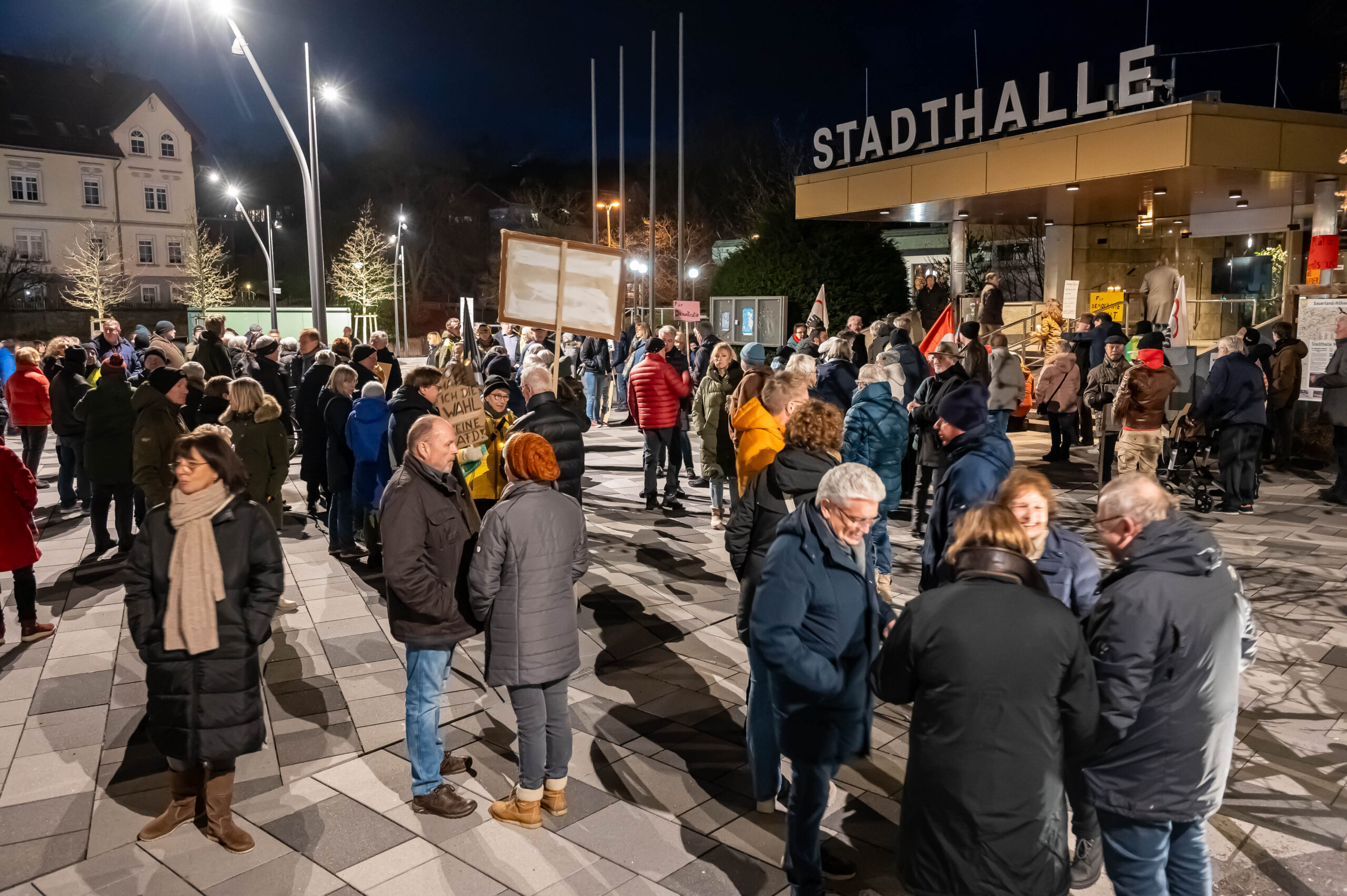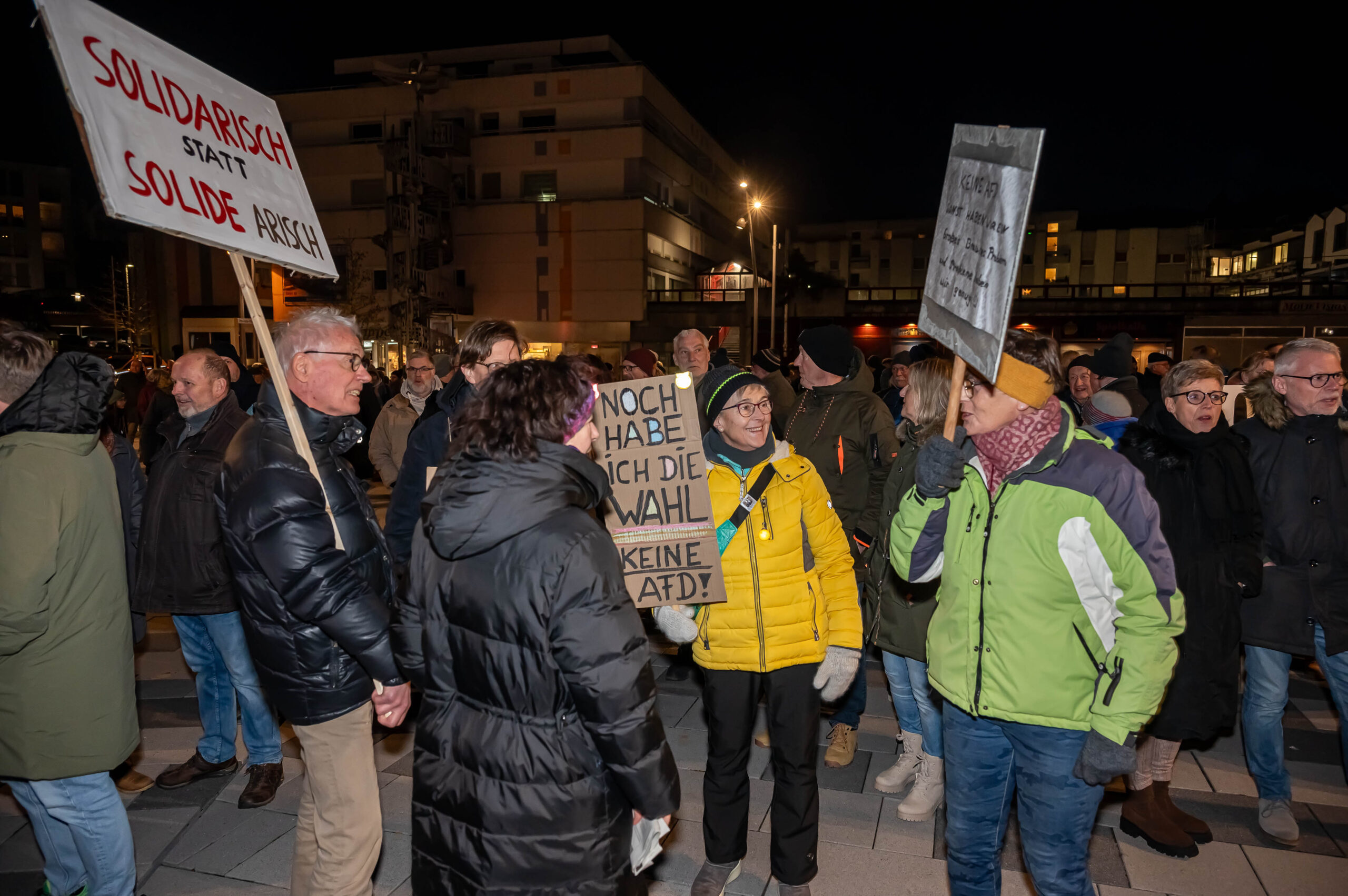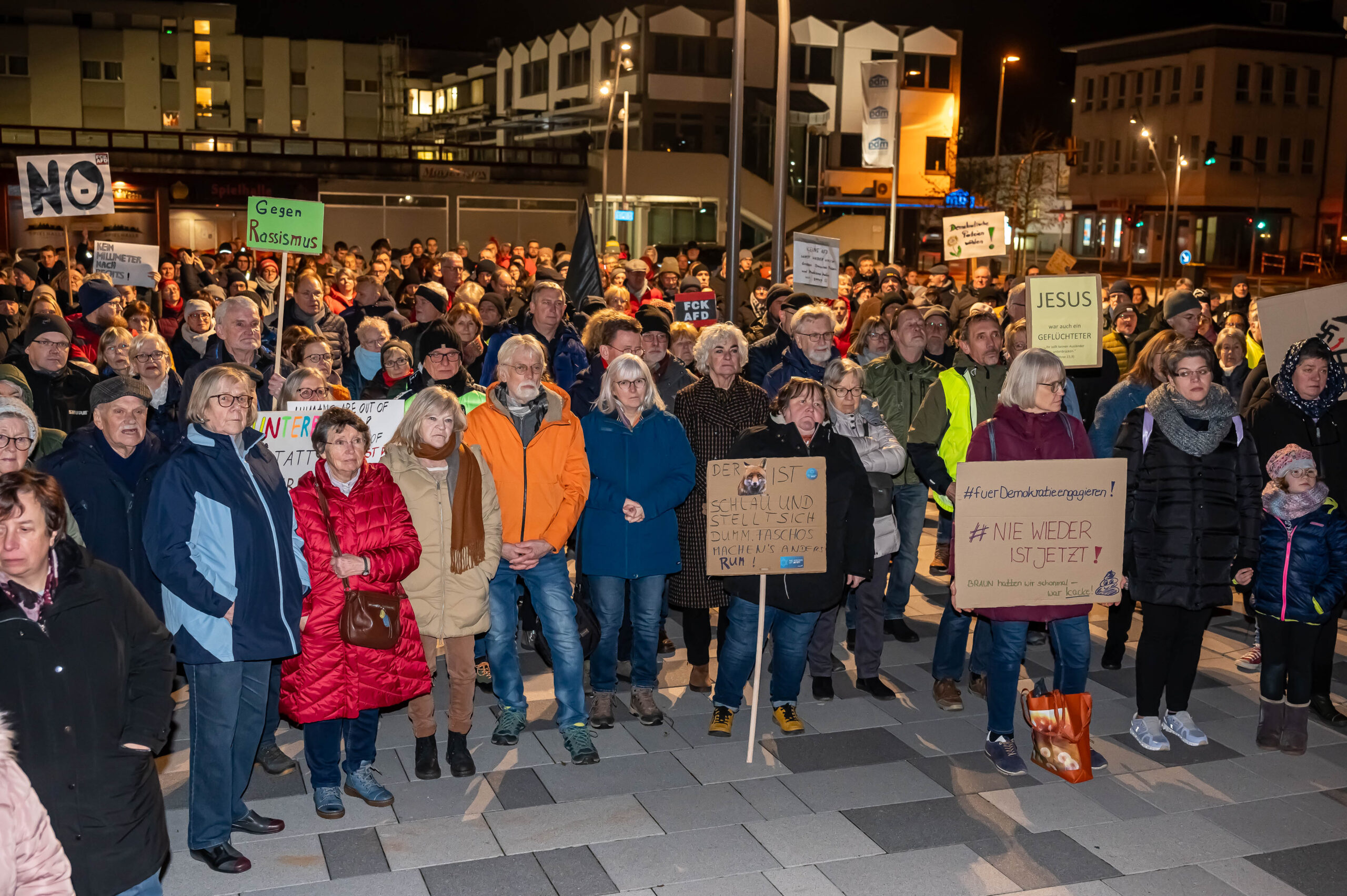 MEINERZHAGEN (mk) Es könnten sogar deutlich mehr Teilnehmer gewesen sein, doch Mit-Organisator Rolf Puschkarsky und die begleitenden Polizisten kamen nach der Mahnwache am Donnerstag, 1. Februar auf dem Otto-Fuchs-Platz übereinstimmend auf diese Zahl. Ohnehin übertrifft diese die Erwartungen, und der Platz vor der Meinerzhagener Stadthalle war voll. Mit jungen Menschen, sogar Kindern, aber zum großen Teil auch mit Menschen, deren Eltern das Dritte Reich hautnah miterlebt haben. Menschen, die den derzeitigen Rechts-Ruck der Gesellschaft und den immer offener gezeigte faschistische Haltung nicht für möglich gehalten hätten.