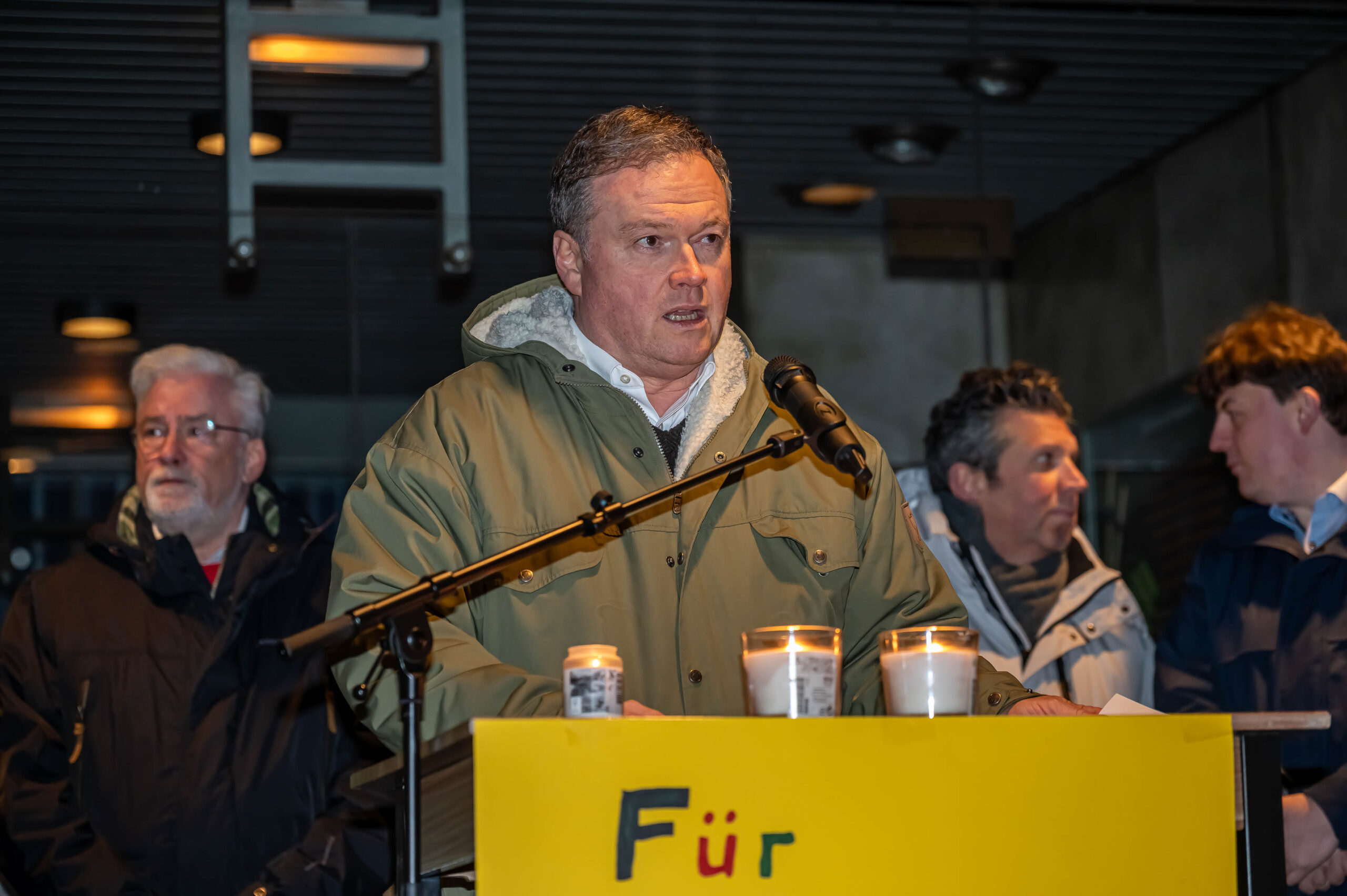 Der Landtagsabgeordnete Gordan Dudas nahm direkt die AfD ins Visier: “AfD-Politik bedeutet Unsicherheit, Gewalt, Vertreibung, Hass, Hetze und wirtschaftlicher Bankrott.” Die AfD sei ein großes Unglück für Deutschland, so der SPD-Politiker in seiner Rede. Seine Befürchtung: “Wer die Demokratie verschläft, wacht in der Diktatur wieder auf!”