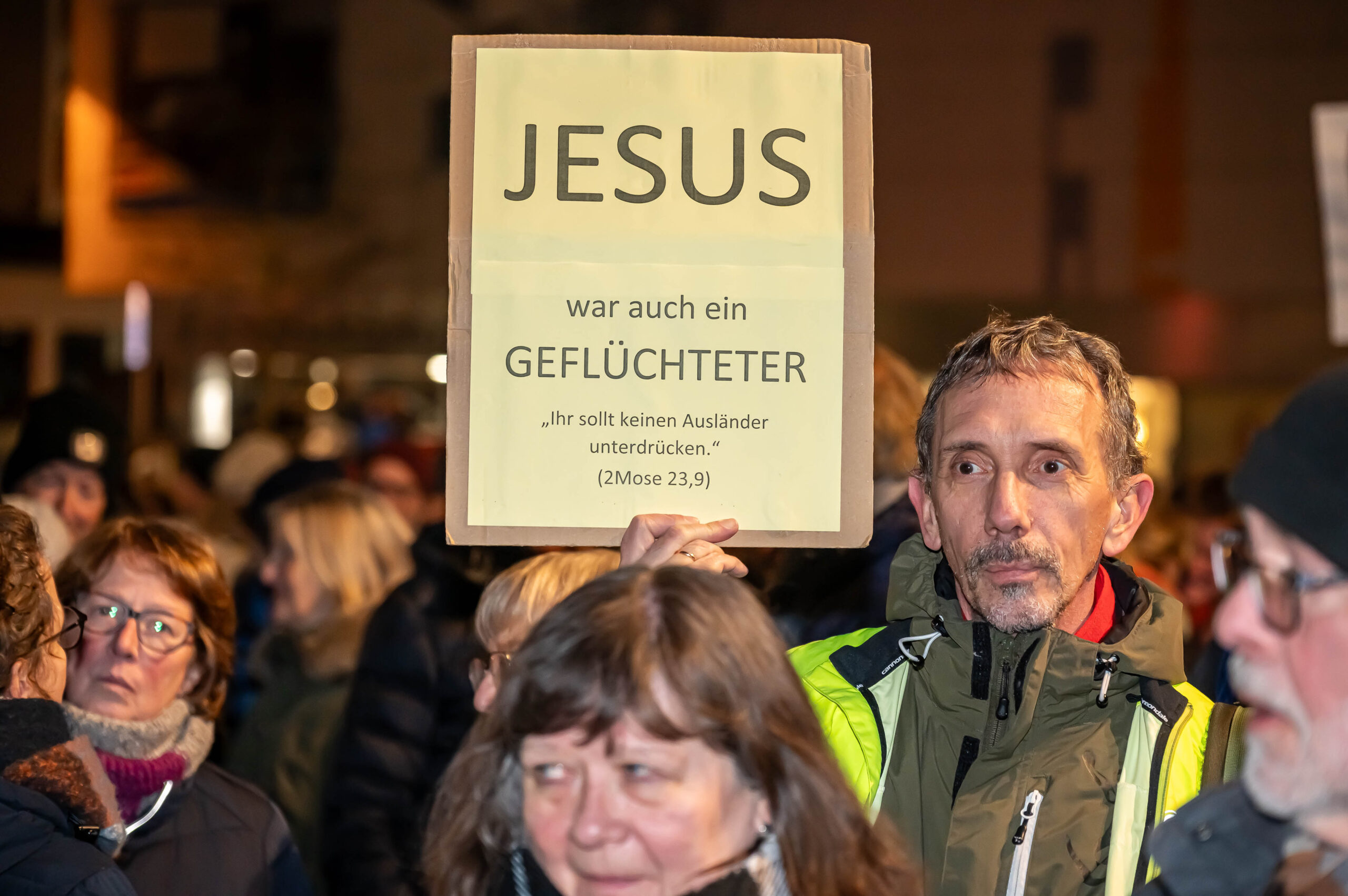 Der evangelische Pfarrer Klaus Kemper-Kohlhase räumte ein, auf die Anfrage, an diesem Abend zu sprechen, gezögert zu haben. Diese Zögern machte er zum Thema seiner kurzen Ansprache und zitierte den bekannten Pfarrer Martin Niemöller: “Als sie mich holten, gab es keinen mehr, der protestieren konnte.” Kemper-Kohlhase sieht es als seine christliche Pflicht, der AfD entgegenzutreten.