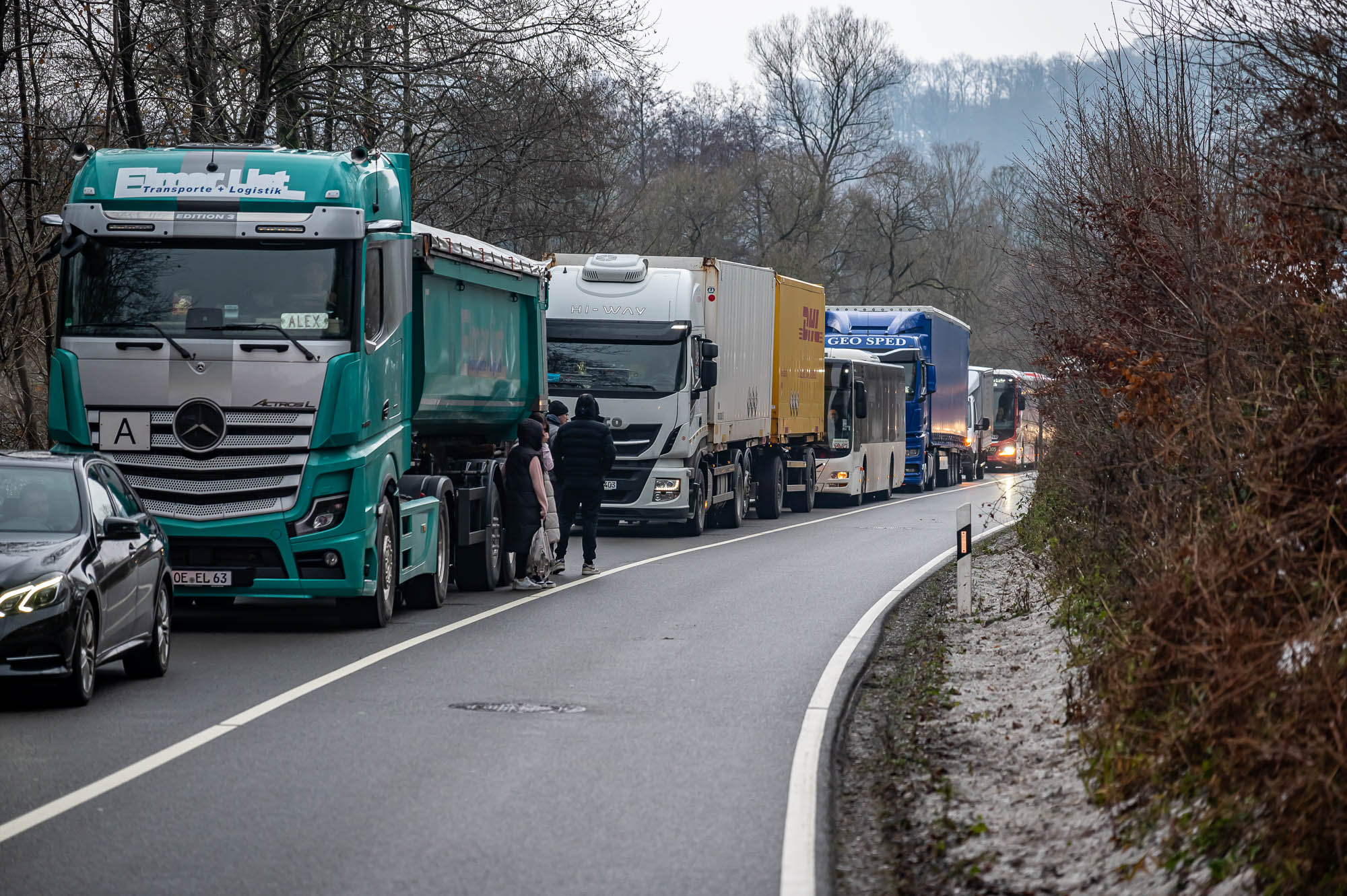 Der Unfall zwischen den beiden Bahnübergängen auf der B54 sorgte im Feierabendverkehr für Vollchaos, kilometerlange Staus in beide Richtungen. Nach Angaben der Polizei (Stand 17.32 Uhr) sind die Abschleppfahrzeuge soeben an der Unfallstelle eingetroffen. Eine Aufhebung der Vollsperrung rückt also in greifbare Nähe.