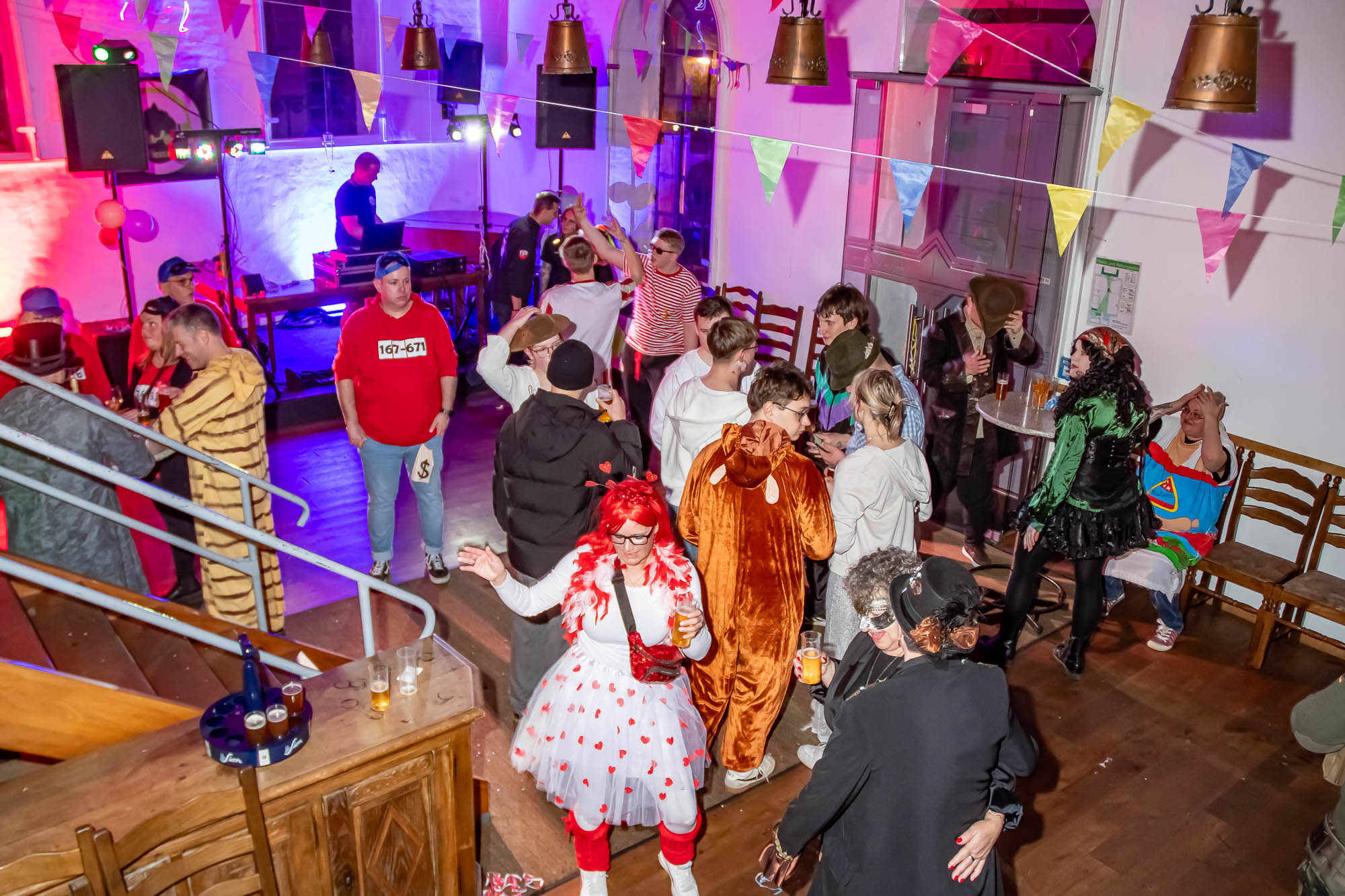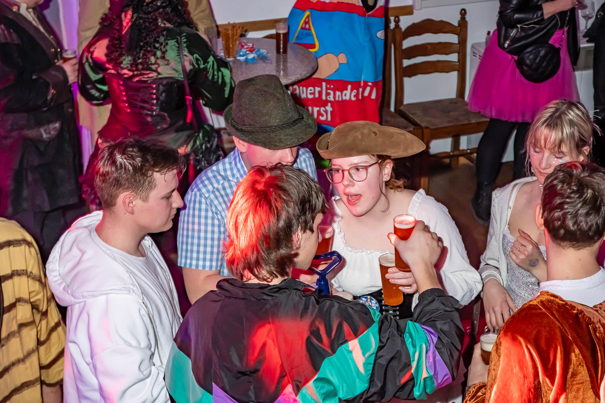 Die Gäste nahmen die Einladung in die urige Location dankbar an und feierten zur Musik, für die DJ Hesse an den Plattentellern stand. Ein besonderer Trend bei den Kostümen war übrigens nicht erkennbar: Die Verkleidungen waren bunt und sehr vielfältig. Eines hatten sie aber gemeinsam: Die Gäste haben sich sehr kreativ und mit viel Witz “ausgetobt”. Manche Klassiker wie Piraten oder Engel waren dabei, aber auch ausgefallene Motive wie der “Dicke Sauerländer”. Die standen übrigens auch auf der Speisekarte, als Imbiss zu Kaltgetränken die dem Rönsahler Landbier oder einem besonders zu dieser Party passenden Kölsch.