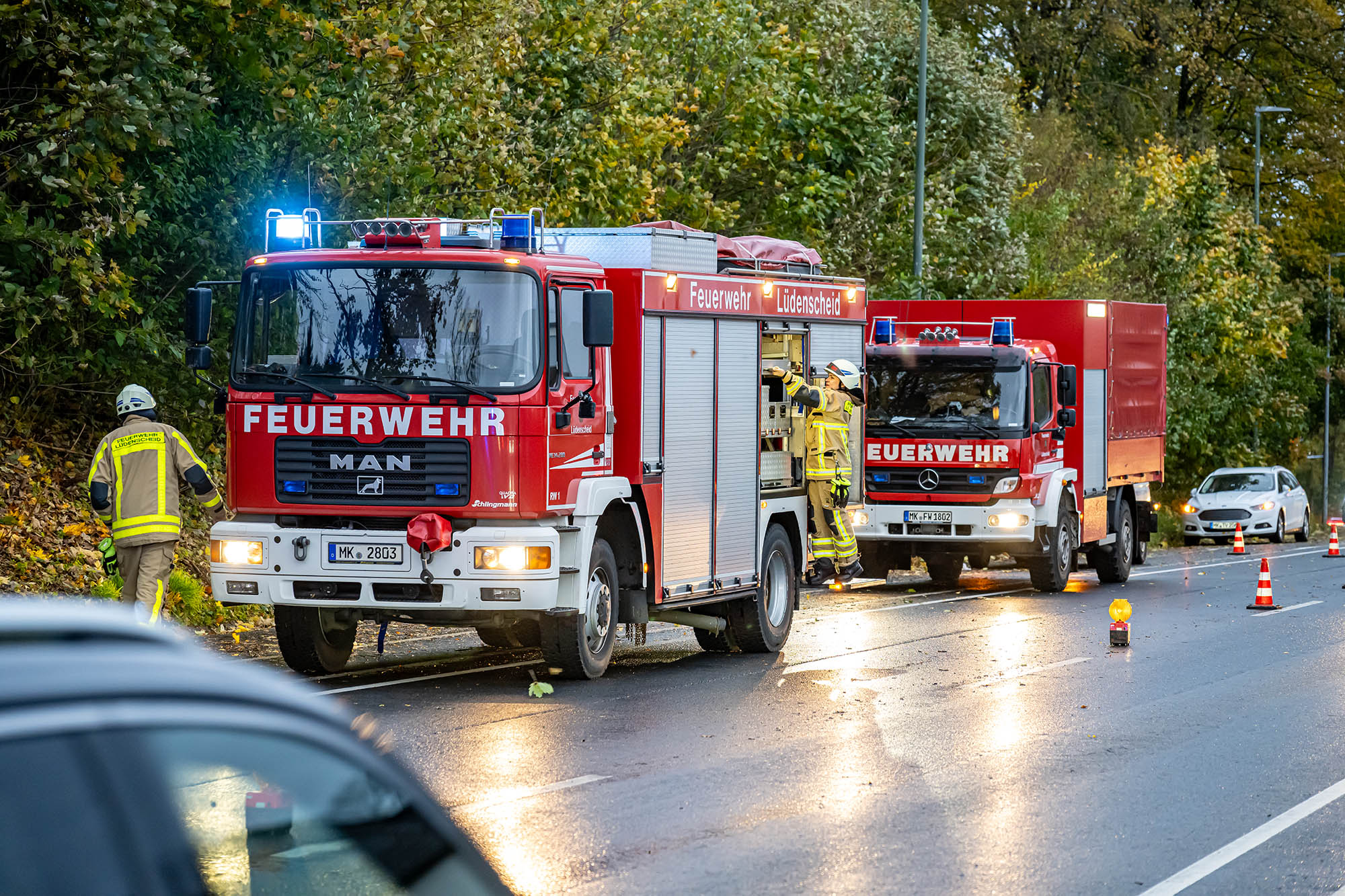 Auch in Halver mussten einige solcher Einsätze abgearbeitet werden. Zwar ähnlich harmlos, aber deutlich mehr als in den Nachbarkommunen. Obendrein musste der Löschzug 1 auch noch am Nachmittag zu einem Frontalzusammenstoß auf die B229 in Höhe Eichholz ausrücken. Hier gab es mehrere Leichtverletzte, die Einsatzkräfte mussten sich um die typischen Absicherungsarbeiten kümmern, allerdings auch um die ausgelaufenen Betriebsmittel.