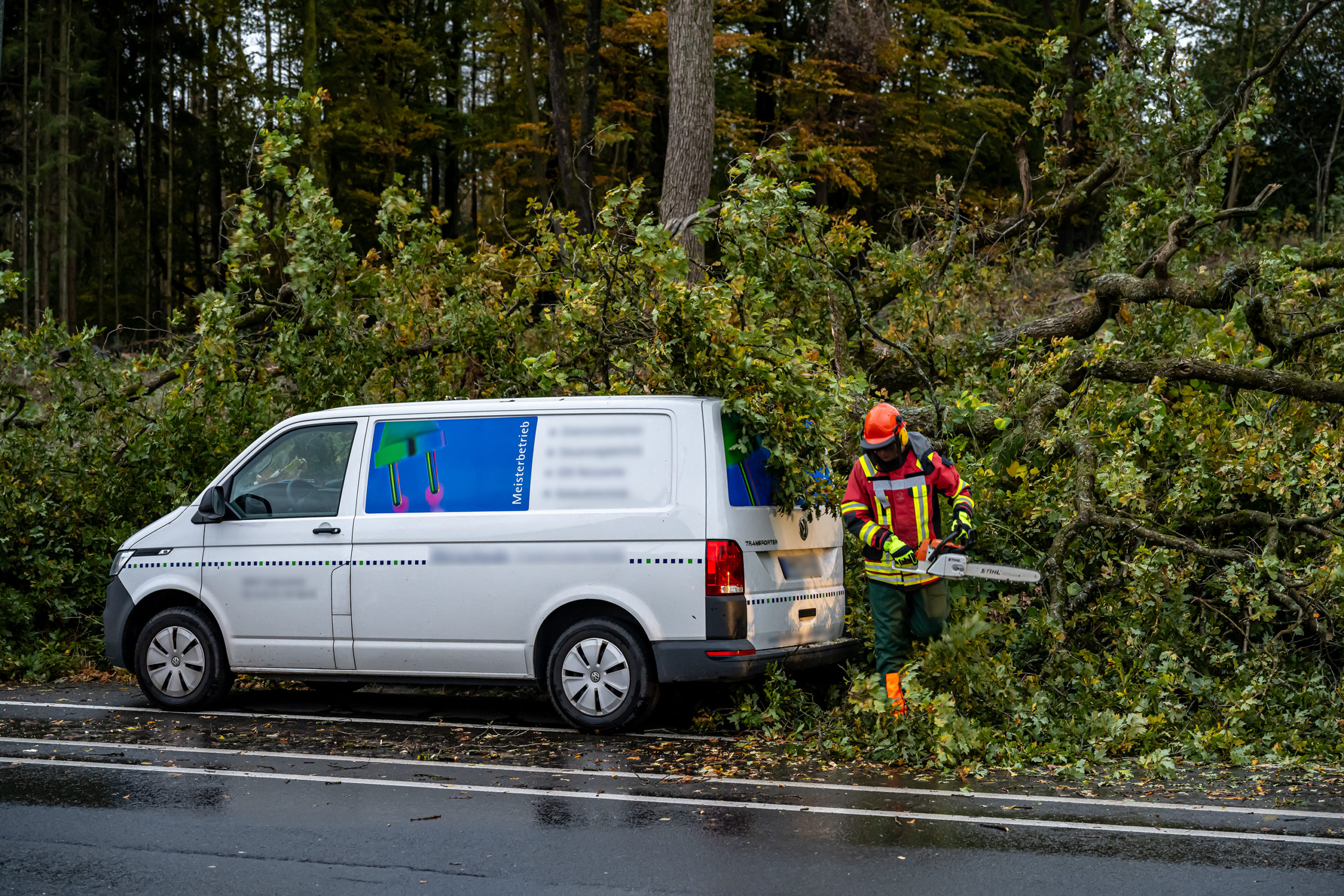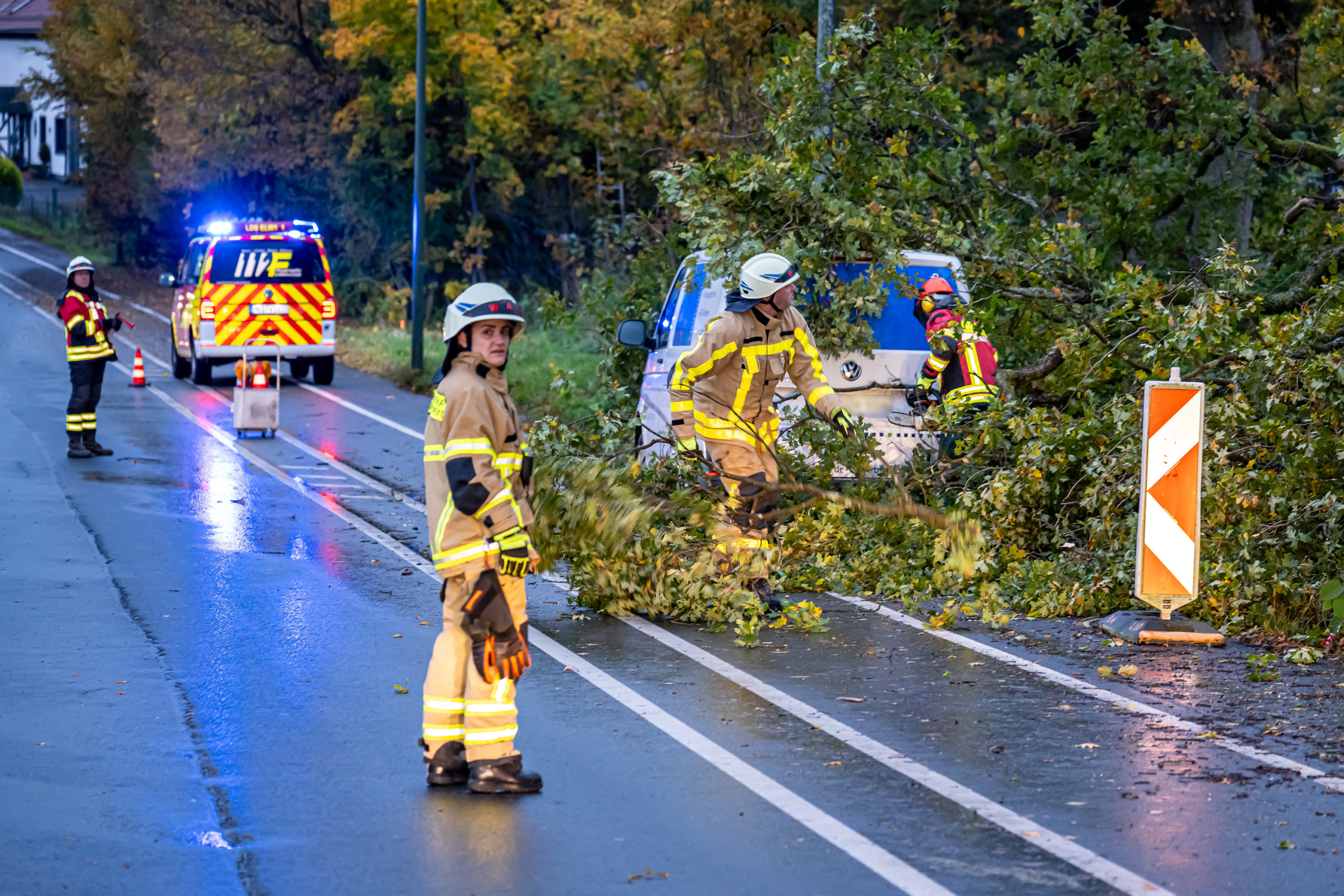 MÄRKISCHER KREIS (mk) Stand 10:55 Uhr: Angesichts des desolaten Zustandes der Bäume braucht es keine ganz heftigen Stürme, um für zahlreiche Feuerwehreinsätze zu sorgen. Dass, was am Donnerstagmorgen, 2. November, als kräftigerer Sturm begann, formiert sich nun möglicherweise zu Orkanstärken. Das Tief hat auch einen Namen: Emir. Bereits seit den frühen Morgenstunden hält Emir die Feuerwehren im Kreisgebiet beschäftigt. Im Südkreis liegt der Schwerpunkt auf Halver, hier sind die Ehrenamtlichen im Dauereinsatz.