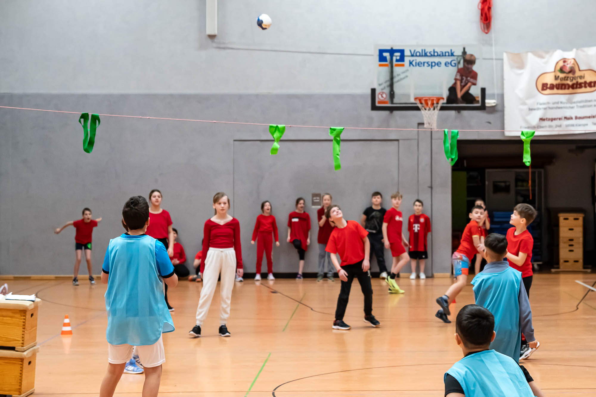 KIERSPE (mk) Nachdem sich die ersten beiden Jahrgänge der Pestalozzi- sowie der Schanhollenschule in sportlichen Wettkämpfen austoben konnten, traten am Dienstag, 18. Februar, nun die höheren Jahrgänge der Gemeinschaftsgrundschule gegeneinander an. Die dritten und vierten Klassen bildeten im Klassenverbund Mannschaften, und kämpften in verschiedenen Disziplinen um die begehrten Pokale. Ausgetragen wurde der “vielseitige Mannschaftswettkampf” in der Vierfeldhalle am Felderhof.