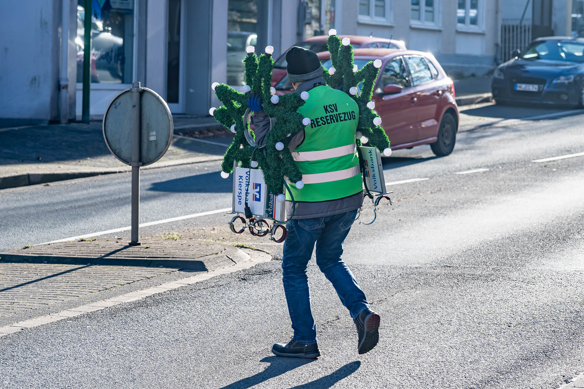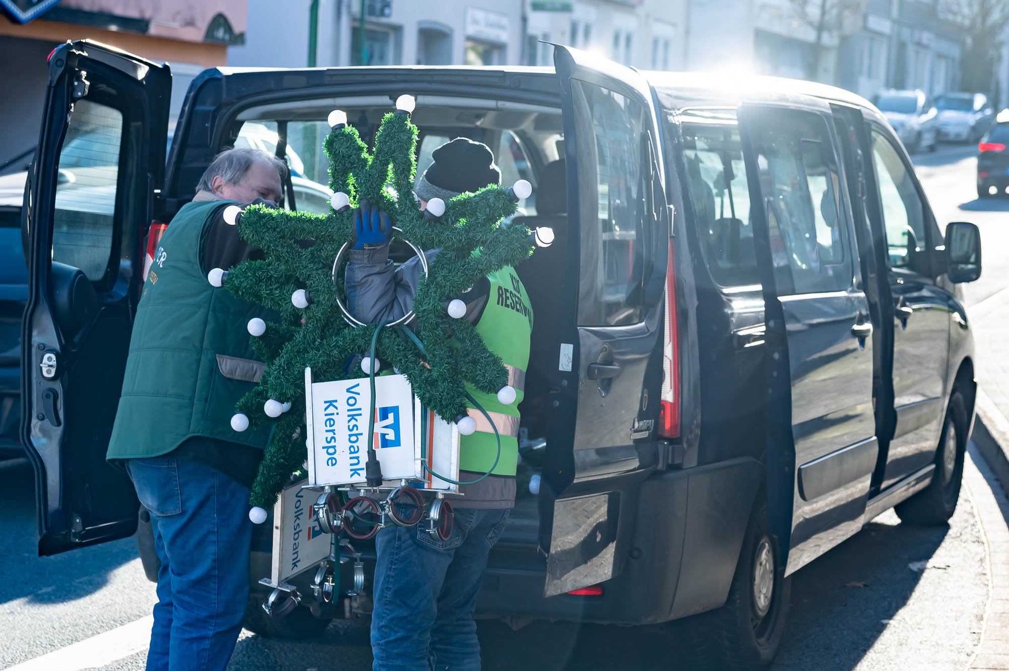Ingesamt 158 dieser Sterne wurden bis Samstagmittag an den Straßenlaternen montiert. Das geht natürlich nicht ohne Vorbereitung. Glücklicherweise haben die modernen LED-Leuchtmittel nicht nur einen drastisch geringeren Stromverbrauch, sondern sind auch wesentlich robuster als die alten Glühlampen. Zu Bruch kann dennoch mal etwas gehen, so, dass vorab alle Sterne mal im Lager des KSV an der Kölner Straße geprüft werden müssen.