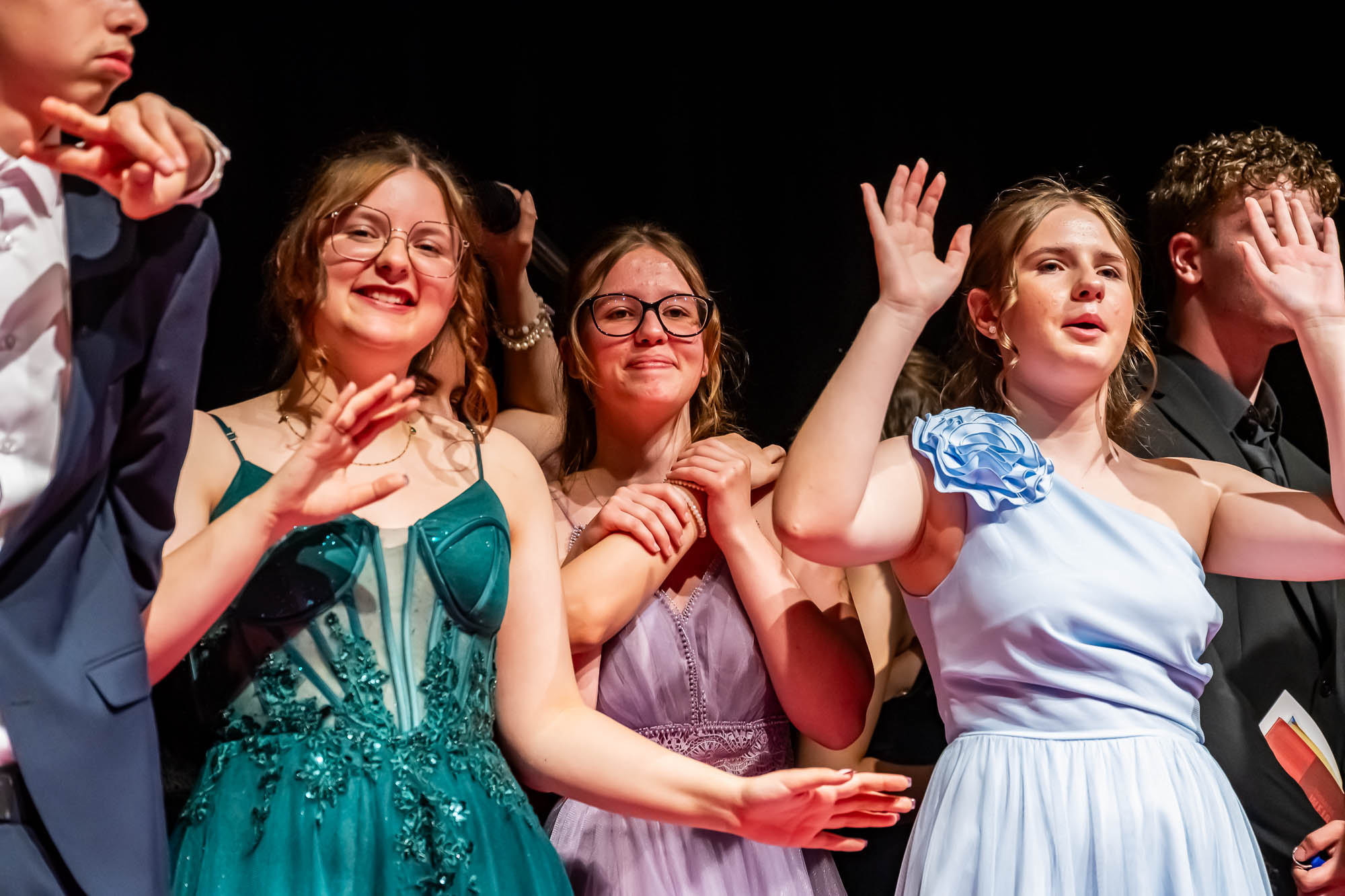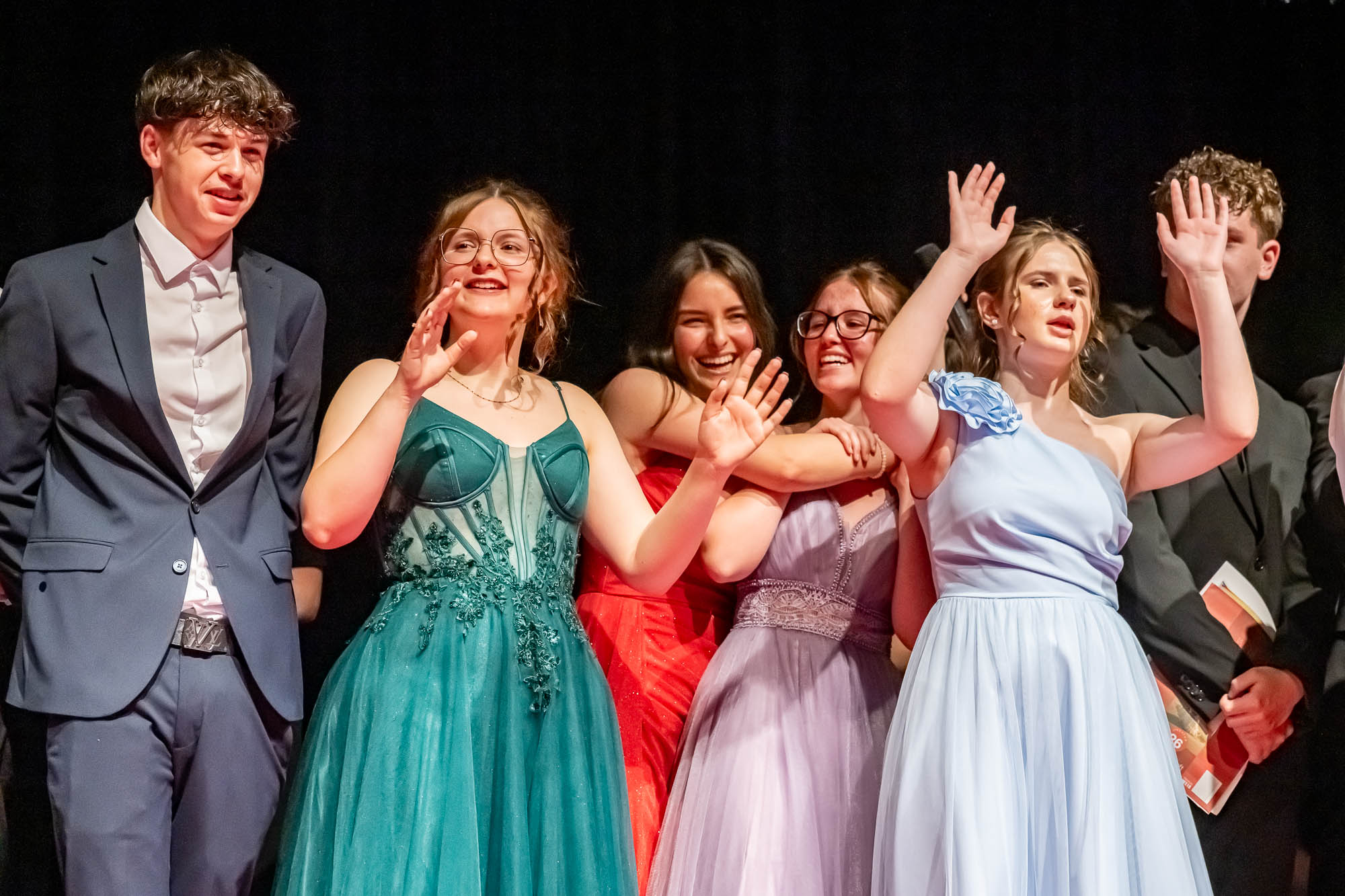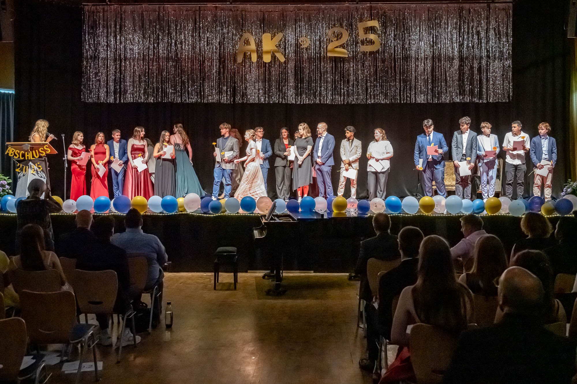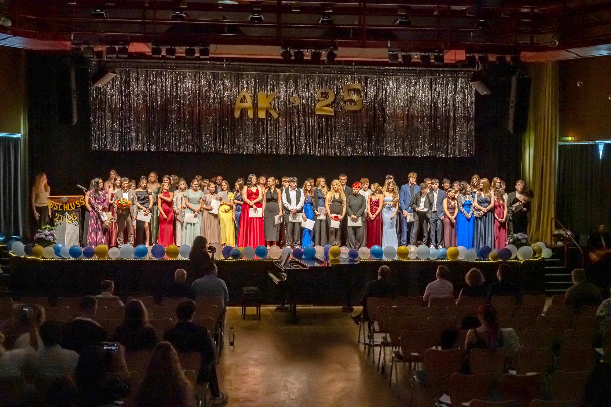Das haben die Schülerinnen und Schüler auch gemacht. Eingebettet in ein umfangreiches Rahmenprogramm mit Vorführungen und viel Musik wurden klassenweise auf der Bühne die Zeugnisse überreicht. Dazu gab es Blumen und freundliche Umarmungen zum Abschied, denn dieser Akt ist schließlich einer. Auch wenn fast die Hälfte der Zehntklässler für die Oberstufe qualifiziert ist, und viele die GSKI wohl noch weitere drei Jahre besuchen werden. Offen bleibt die Frage, ob der eine oder andere an diesem Nachmittag seine Karriereziele nochmal überdacht hat. Zahraa Najarhai und Dilan Kizgin sowie Alexia Albina und Joshua Reuber haben als Moderatoren-Duos durch die beiden jeweils rund zweistündigen Abschlussfeiern geführt, und sich im Rampenlicht auf der Bühne offensichtlich wohlgefühlt.