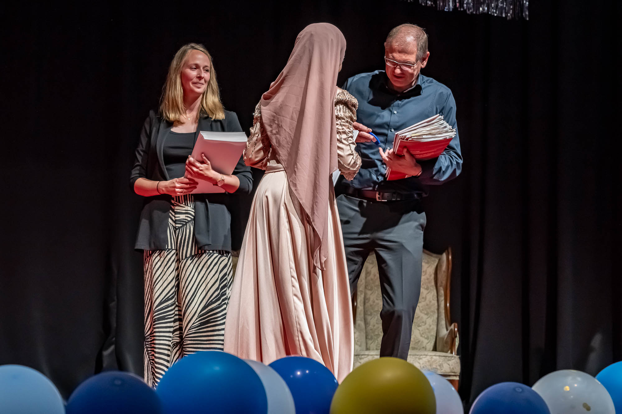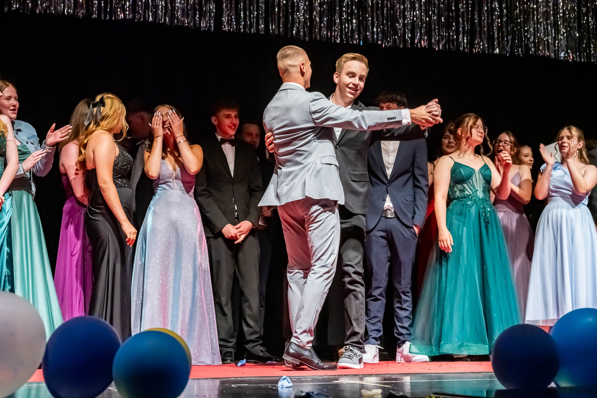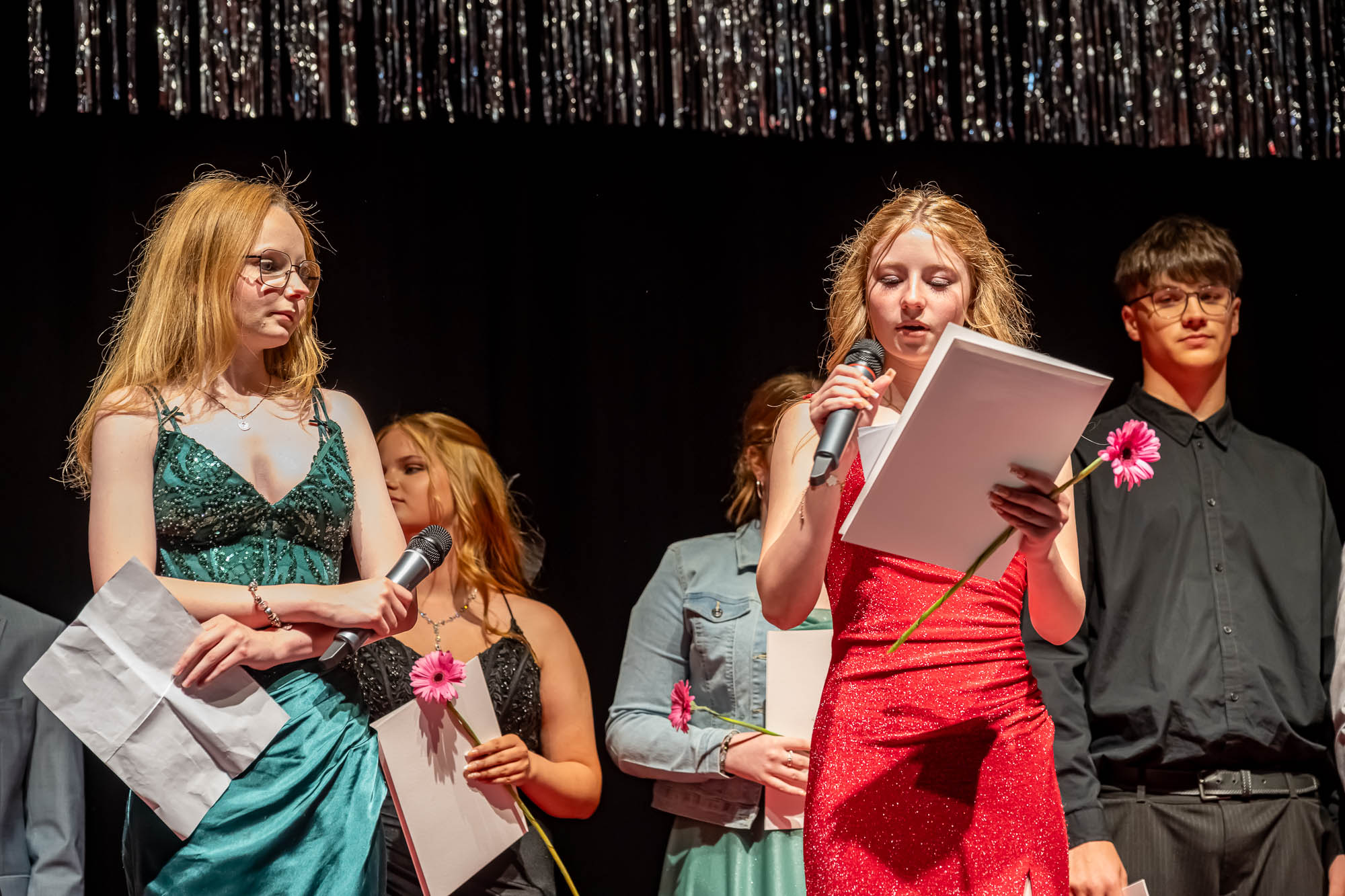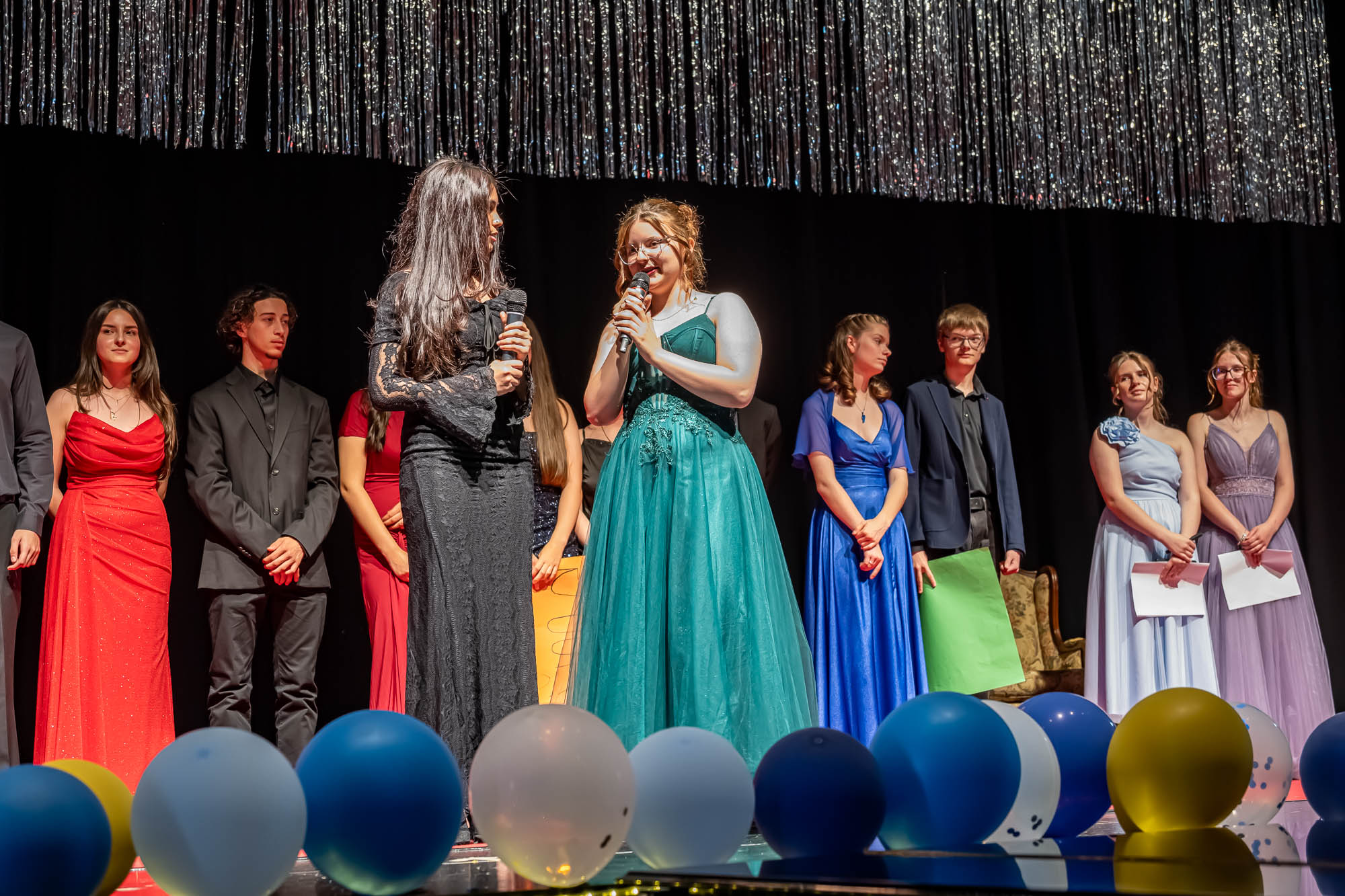 Das haben die Schülerinnen und Schüler auch gemacht. Eingebettet in ein umfangreiches Rahmenprogramm mit Vorführungen und viel Musik wurden klassenweise auf der Bühne die Zeugnisse überreicht. Dazu gab es Blumen und freundliche Umarmungen zum Abschied, denn dieser Akt ist schließlich einer. Auch wenn fast die Hälfte der Zehntklässler für die Oberstufe qualifiziert ist, und viele die GSKI wohl noch weitere drei Jahre besuchen werden. Offen bleibt die Frage, ob der eine oder andere an diesem Nachmittag seine Karriereziele nochmal überdacht hat. Zahraa Najarhai und Dilan Kizgin sowie Alexia Albina und Joshua Reuber haben als Moderatoren-Duos durch die beiden jeweils rund zweistündigen Abschlussfeiern geführt, und sich im Rampenlicht auf der Bühne offensichtlich wohlgefühlt.