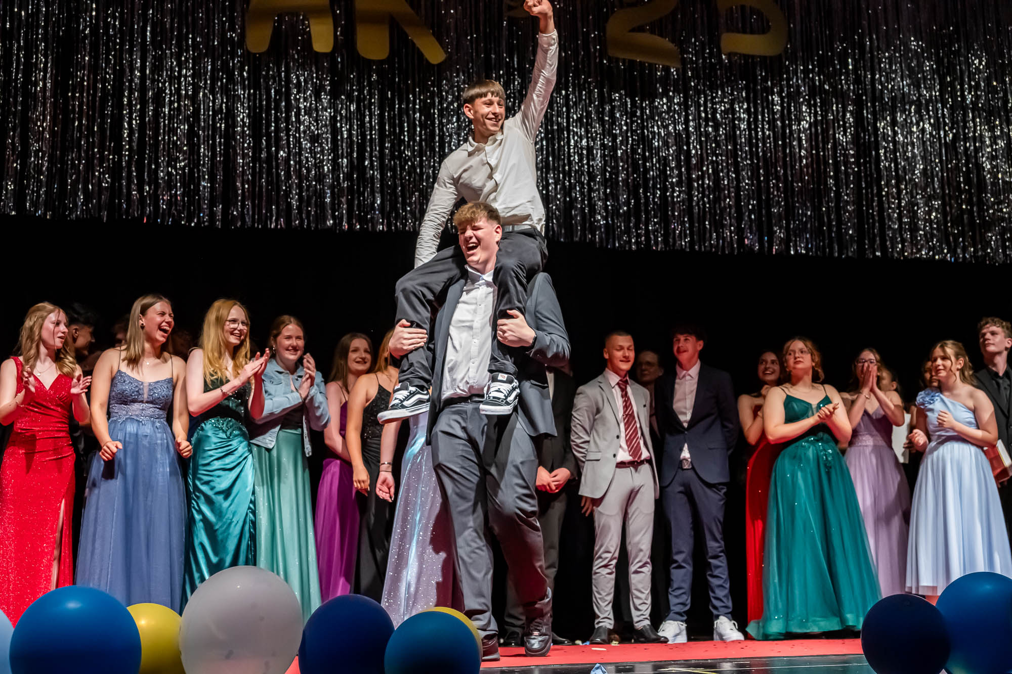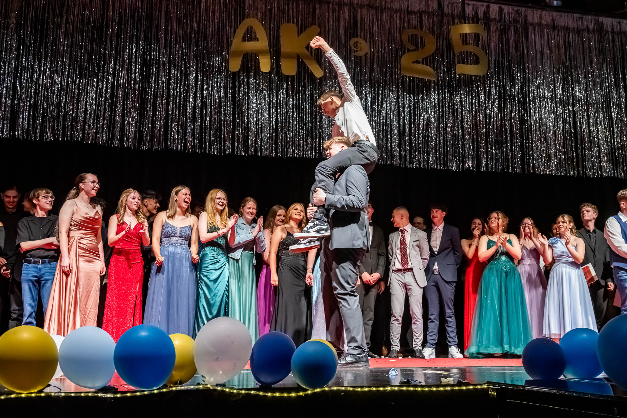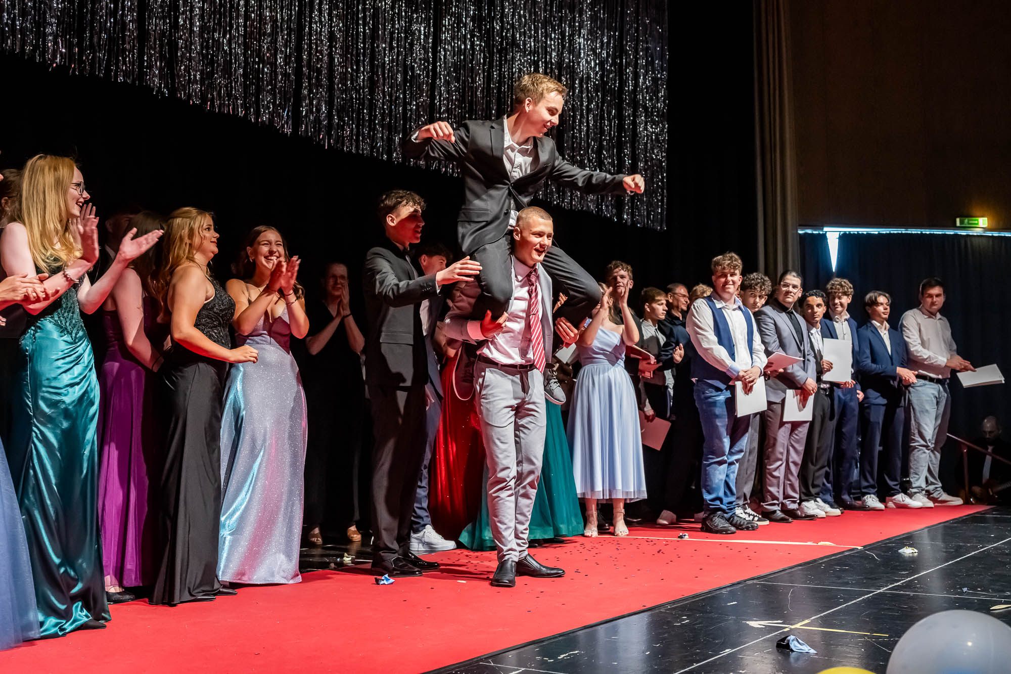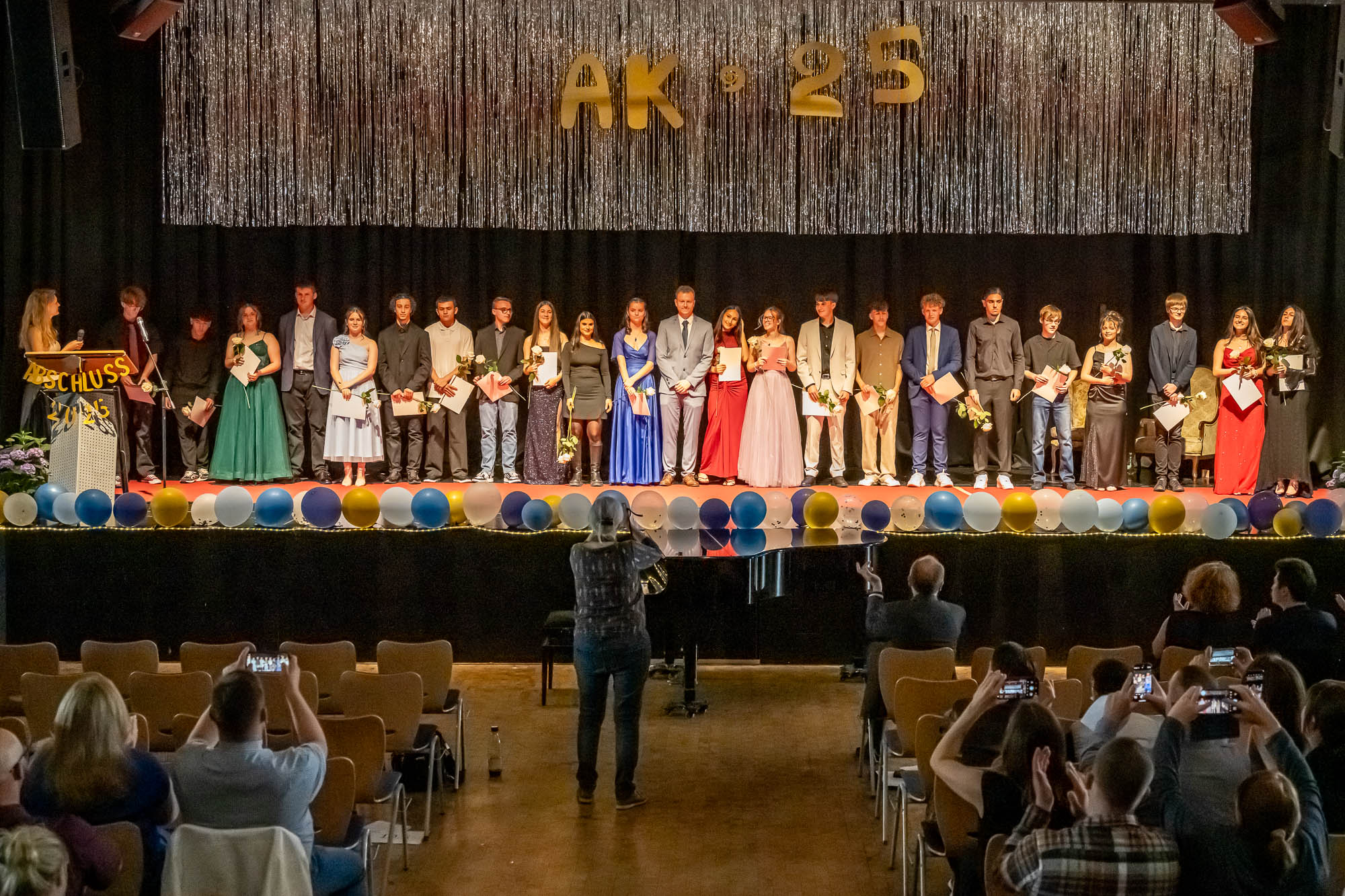 Hier die Klassenfotos auf der Bühne:
