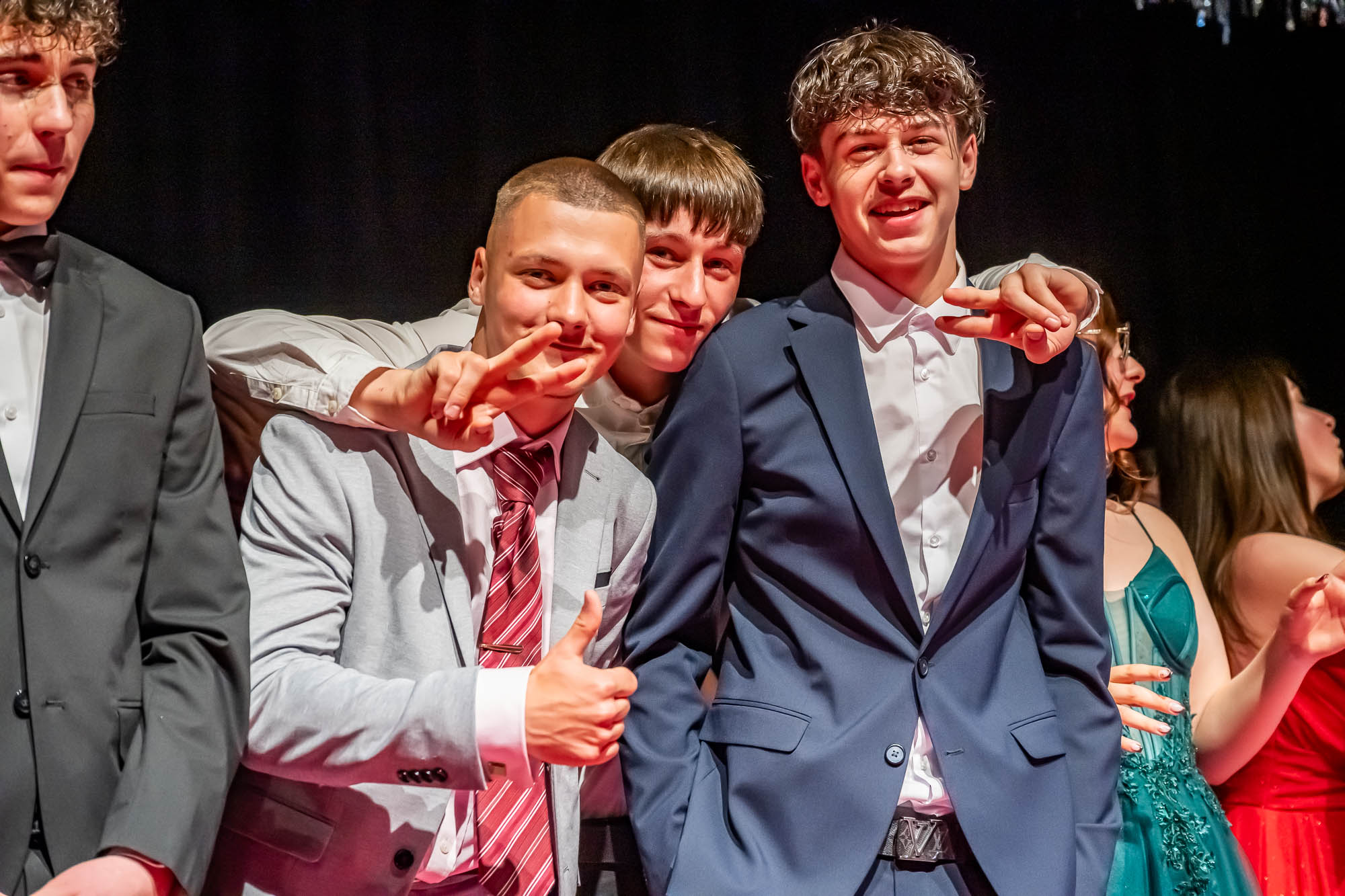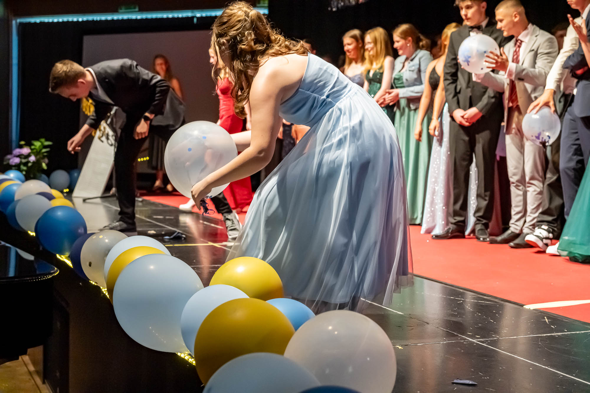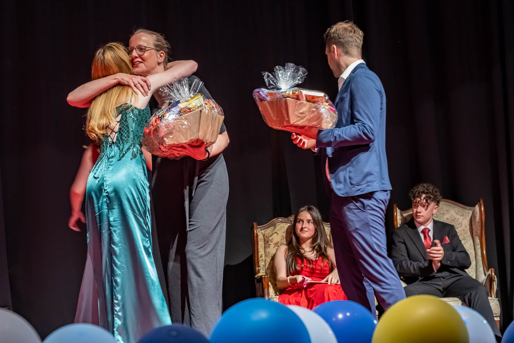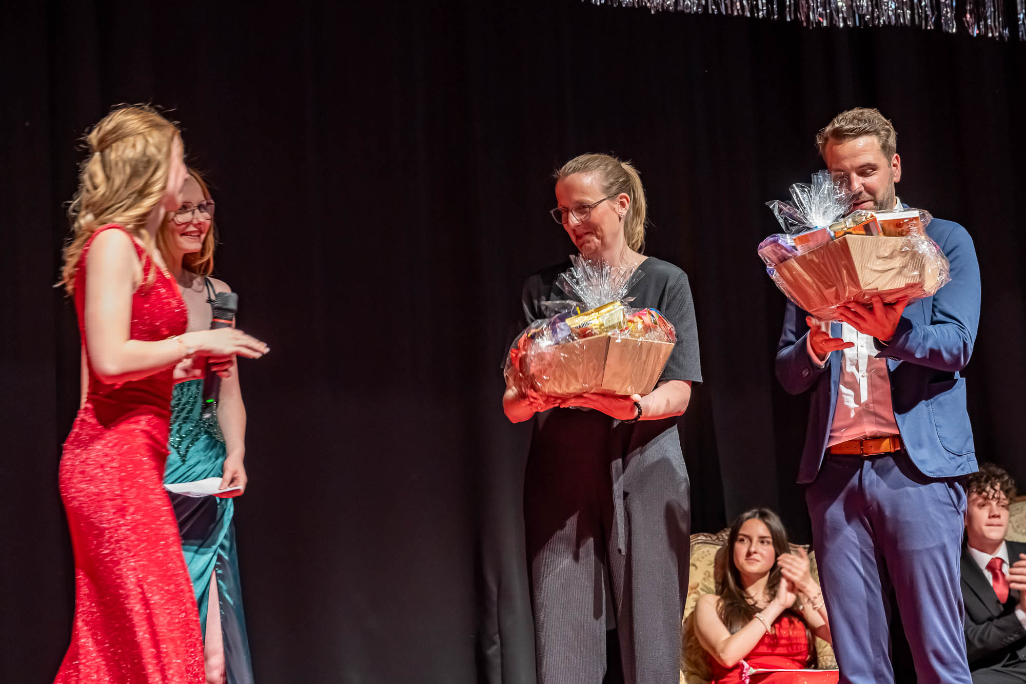 Hier die Klassenfotos auf der Bühne: