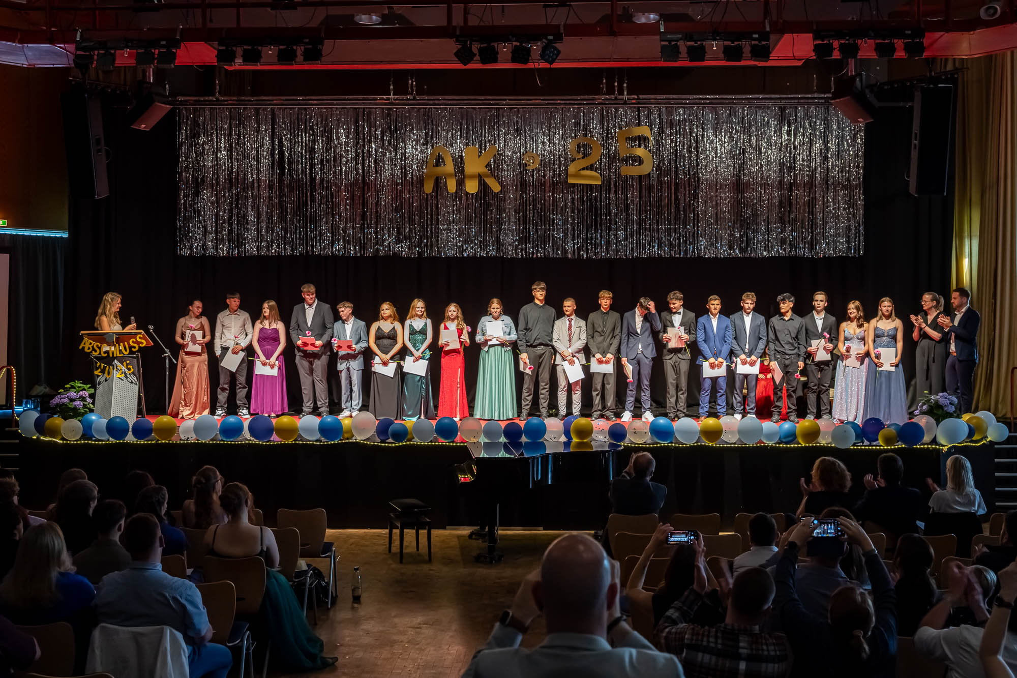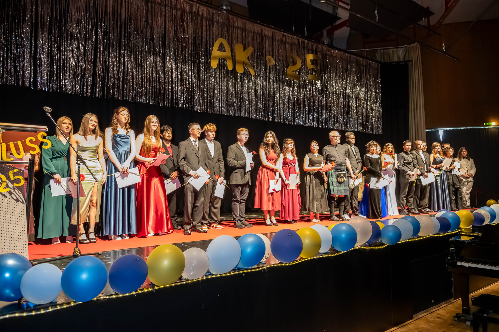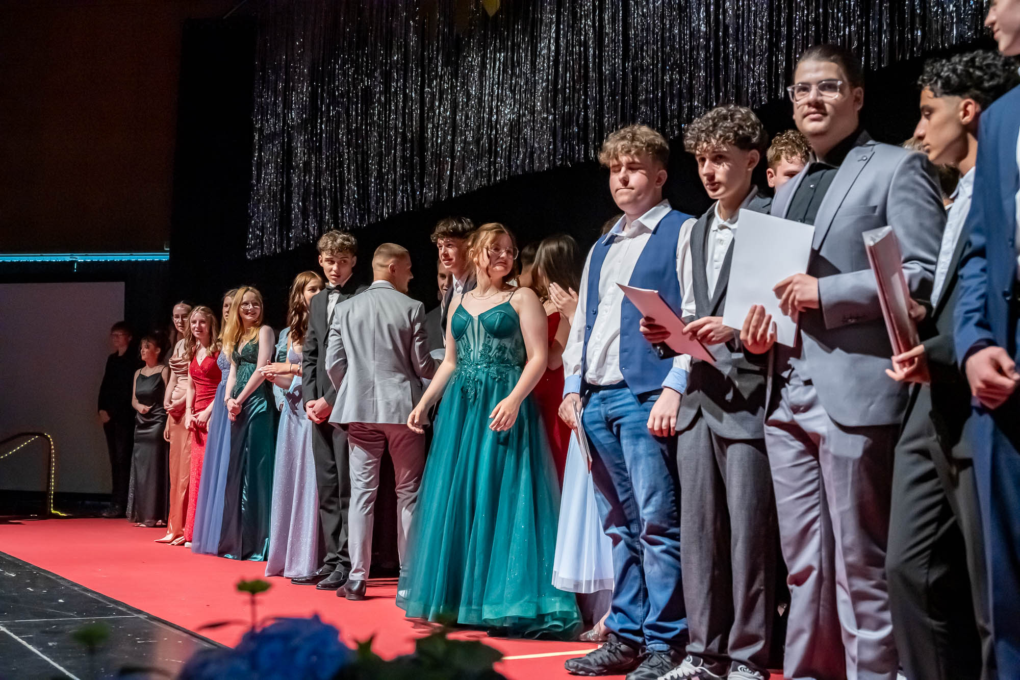 KIERSPE (mk) Der Rahmen, in dem die Schülerinnen und Schüler zum Abschluss des 10. Jahrganges ihre Zeugnisse erhalten, war auch in diesem Jahr feierlich und würdevoll. Die opulenten Abi-Feiern inspirieren offensichtlich die Jüngeren, die mittlerweile genauso im Ballkleid oder Anzug ihre Benotungen entgegennehmen. Dass die anschließenden Partys nicht ganz so lange gingen, hängt auch an der Anzahl der Jugendlichen, die 2019 in sechs Klassen angetreten sind. Mit 144 war diese diesmal eher gering, erklärte Schulleiter Johannes Heintges in seiner Rede, und von ihnen seien auch nicht alle bis zum Abschluss geblieben.