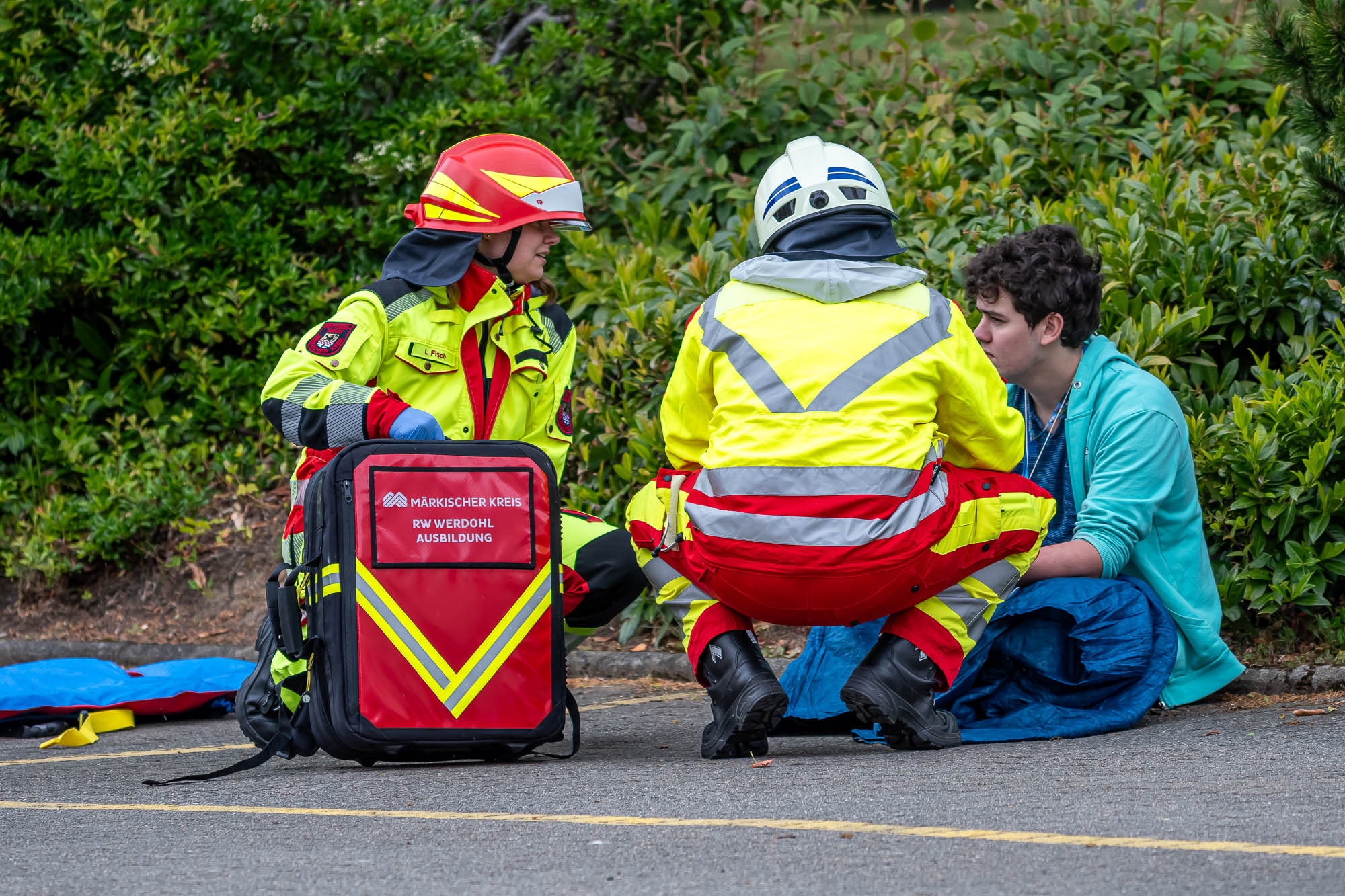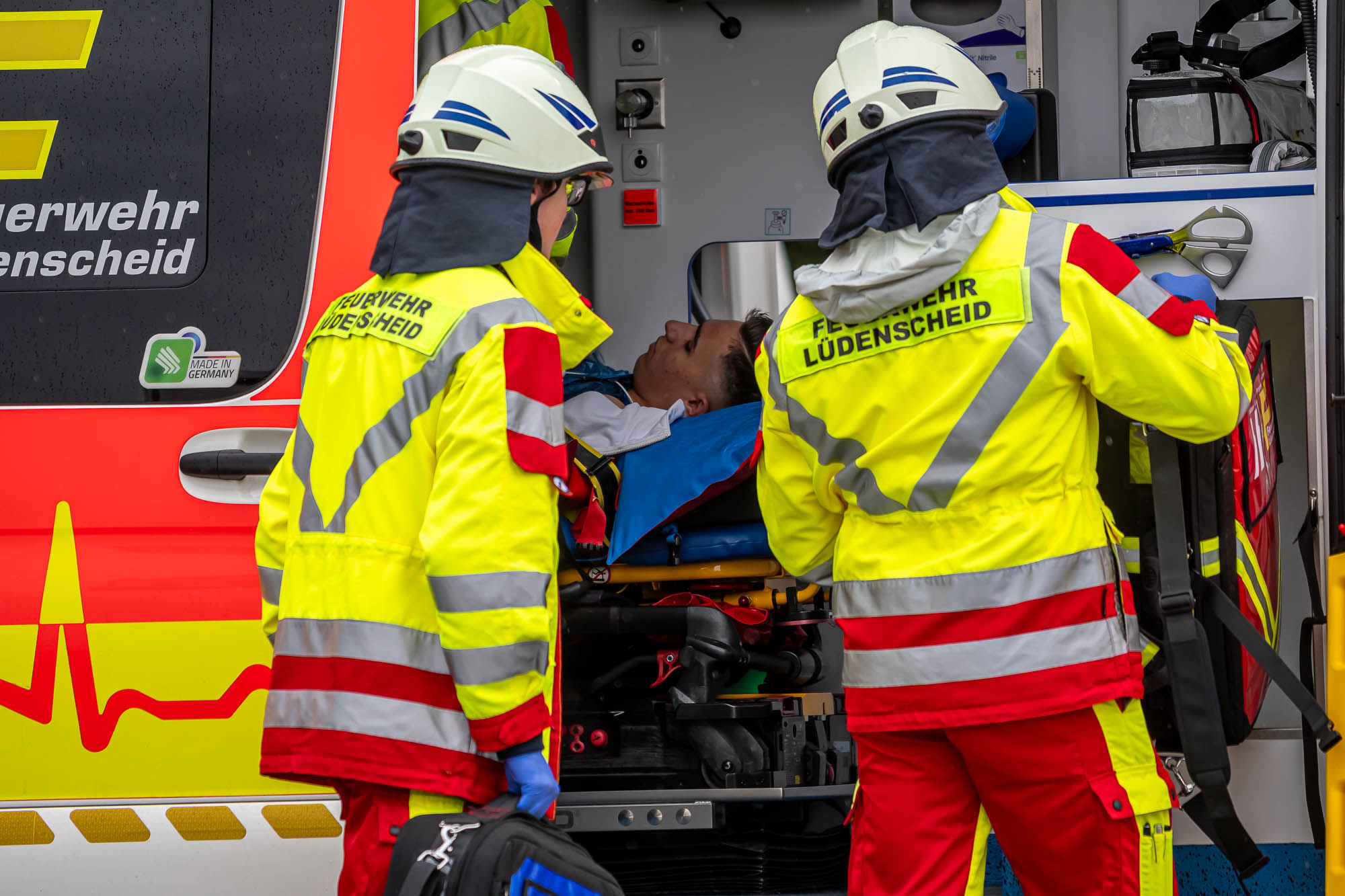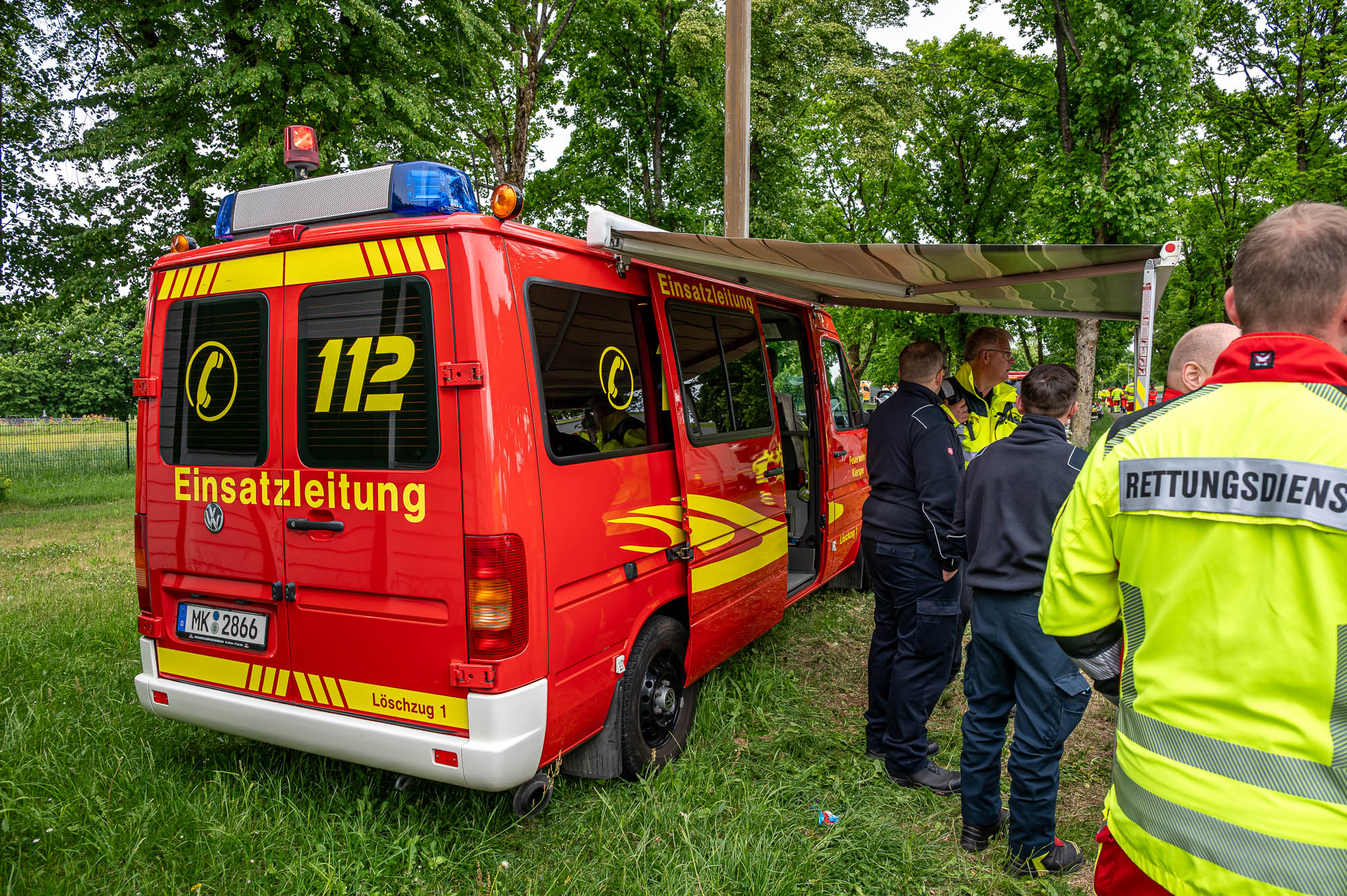 Auch diese war ein wesentlicher Baustein der Übung: “Im Rahmen der Übung war auch die Einsatzleitung im Brandschutz- und Rettungsdienstzentrum (BRZ) Altena-Rosmart als Hintergrundstab tätig. Ziel war es, die Kommunikation und Zusammenarbeit zwischen einer punktuellen Einsatzlage vor Ort und einem rückwärtig eingesetzten Führungsstab zu erproben und weiter zu verbessern”, erläutert der Märkische Kreis schriftlich die Vorgehensweise. Kreisbrandmeister Kling, sein Stellvertreter Jörg Döring und der Ärztliche Leiter des Rettungsdienstes Heinz Ostermann waren selbst vor Ort. Und etliche erfahrene Einsatzleiter der jeweiligen Hilfsorganisationen, die alle ihre Position in der Struktur hatten. Rund zwei Stunden dauerte der Einsatz, an dessen Ende spürbar von allen eine gewisse Anspannung abfiel. Spürbar waren auch die Motivation und das Herzblut, mit der alle Beteiligten dabei waren. Die Lage stellte sich erschreckend realistisch dar, und der Aufwand im Vorfeld nachvollziehbar enorm: “So eine Übung können wir höchstens alle zwei Jahre durchführen”, so Michael Kling. Der viele Eindrücke und Notizen mitnimmt. Schließlich geht es nicht nur um das Training für die Beteiligten, sondern auch um das Optimieren oder gar das Erkennen von Schwachstellen. “Immer vor der Lage sein” lautet ein wichtiges Motto unter Hilfsorganisationen. Deutlicher als bei dieser Übung kann man dazu wohl nicht alle Register ziehen.