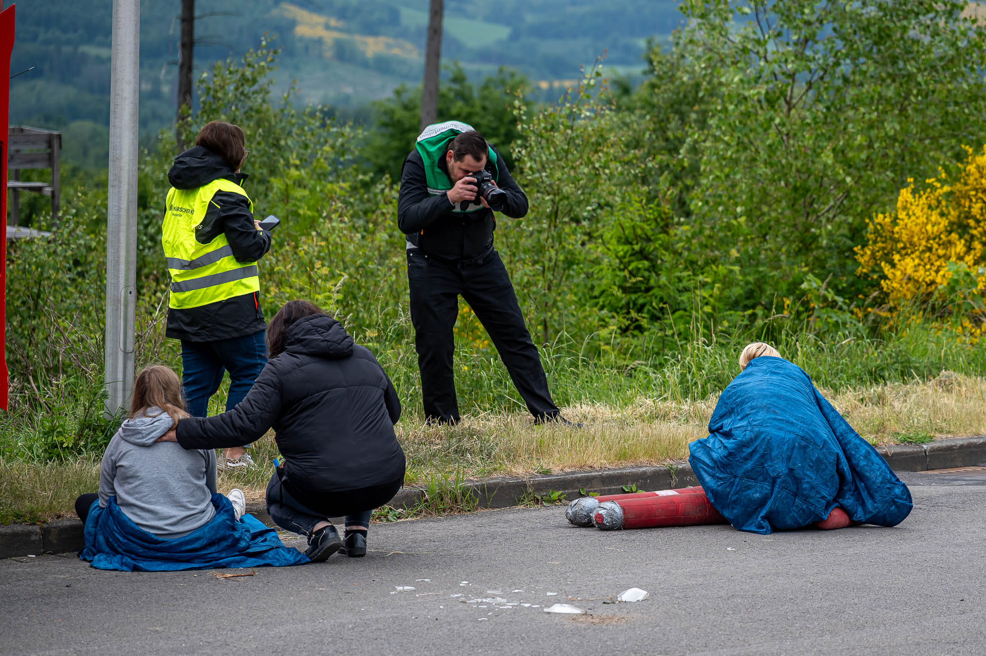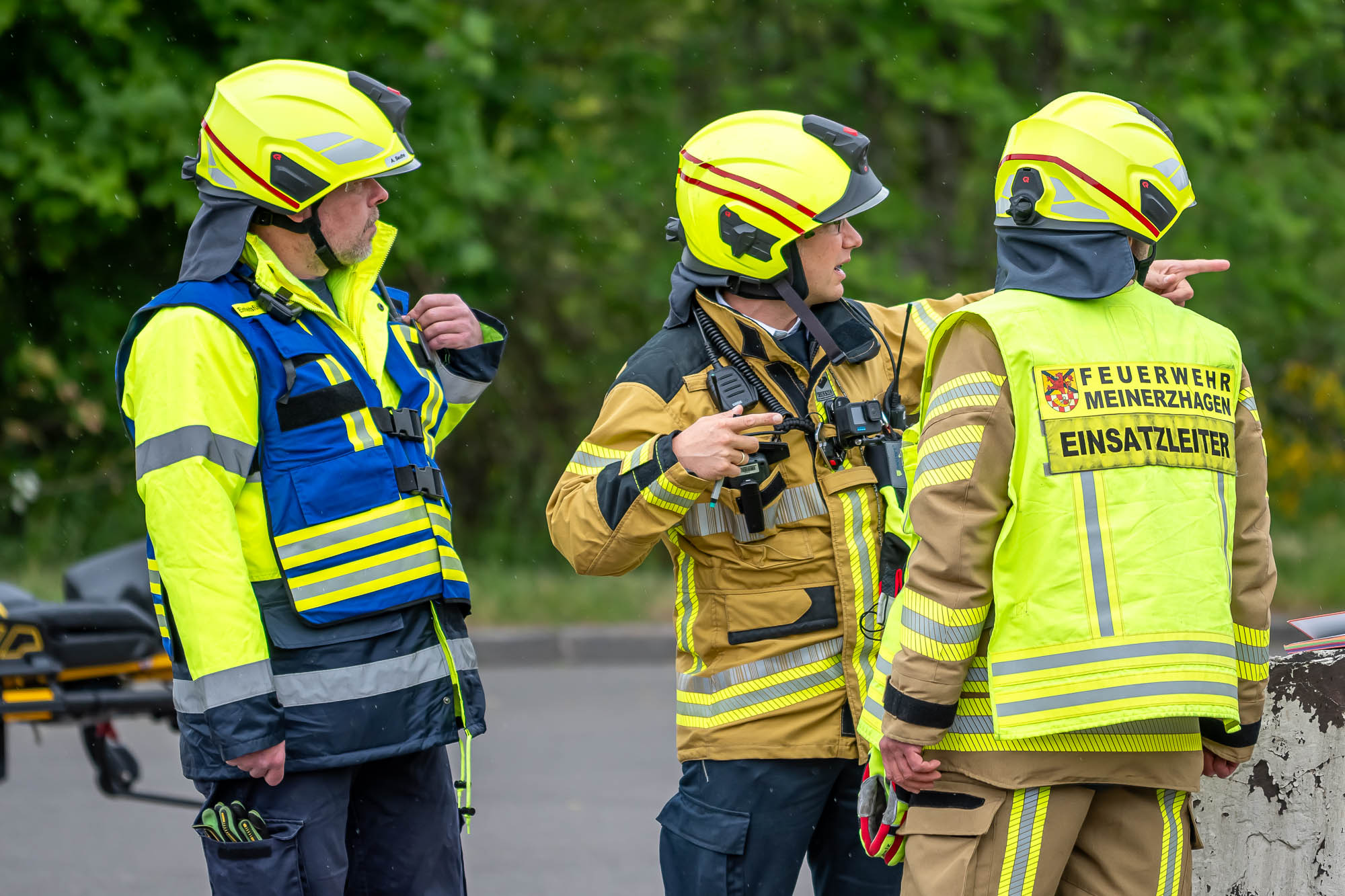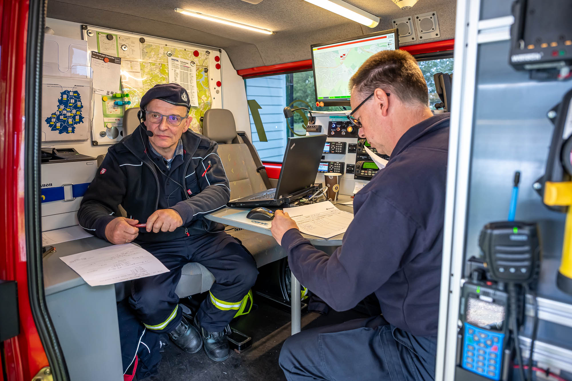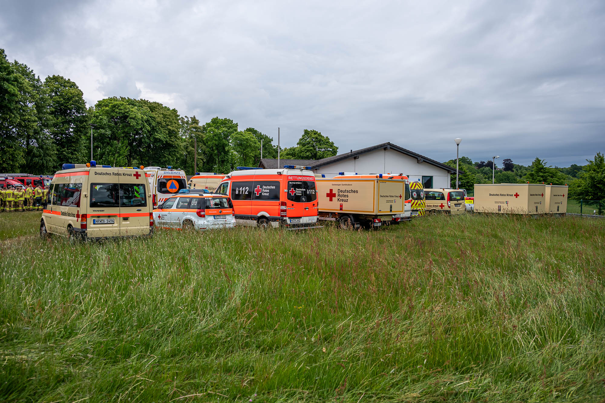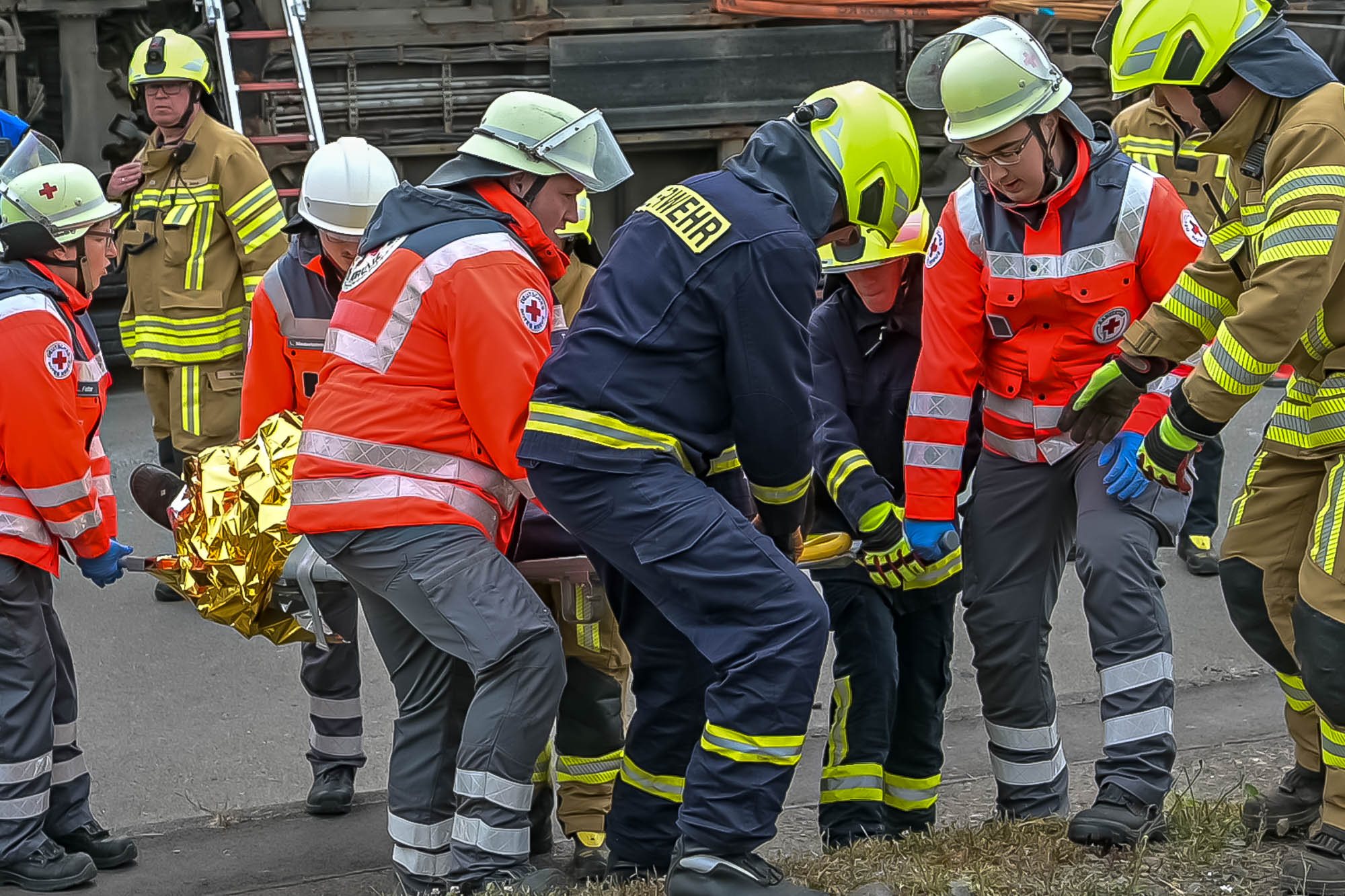 Noch mehr als bei anderen Übungen behielten die Organisatoren und Einsatzleiter auch im Blick, wie realistisch die Rettungskräfte die Situation auch mental empfinden. “Bereits nach kurzer Zeit tauchen die Beteiligten so tief in die Lage ein, dass sie kaum noch wahrnehmen, dass es sich um eine Übung handelt”, heißt es aus dem Leitungsstab. Das ist besonders bei diesem sensiblen und gefährlichen Thema erwünscht und wichtig, doch übertreiben darf man es nicht: “Wir müssen den Kipppunkt im Auge behalten”, erläutert Kreisbrandmeister Kling. Die psychosoziale Belastung sieht Kling als fast genauso hoch an wie bei echten Einsätzen: “Darum ist es auch gut, dass alle Beteiligten im Anschluss noch zum Essen und Trinken in der Gemeinschaft zusammensitzen und sich austauschen.” Keiner würde den “Hammer fallen lassen” und sofort heimfahren. Das lobt Kling in mehrfacher Hinsicht und betont, dass ja hier zu 90% Ehrenamtliche beteiligt sind. Darüber hinaus war ohnehin die Einheit Psychosoziale Notfallversorgung für Einsatzkräfte (PSNV‑E) beteiligt und hätte auch real helfen können.