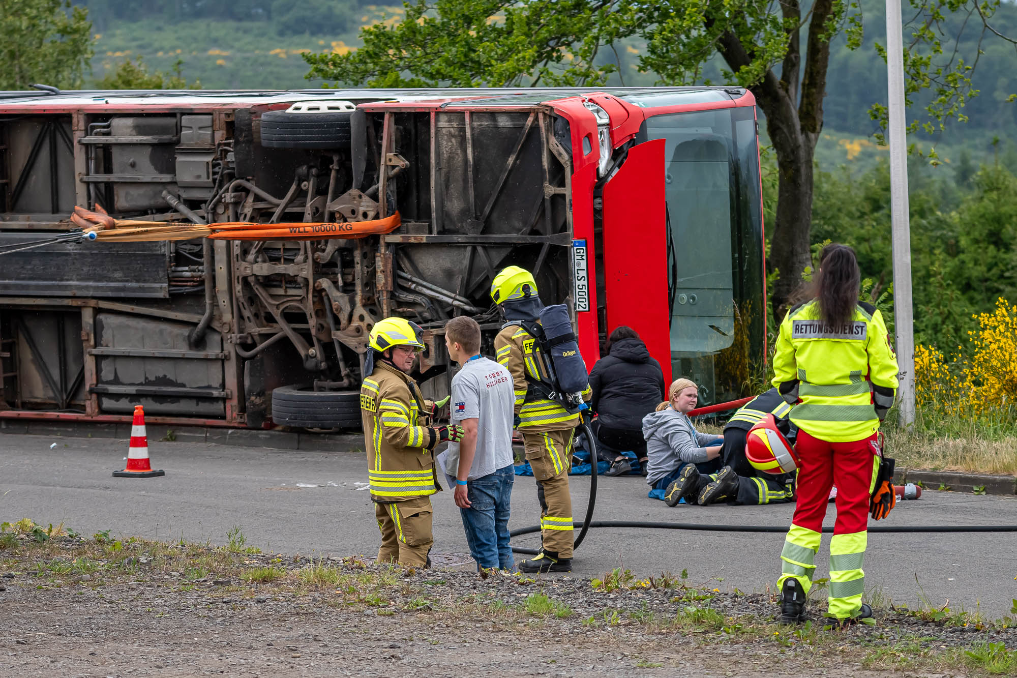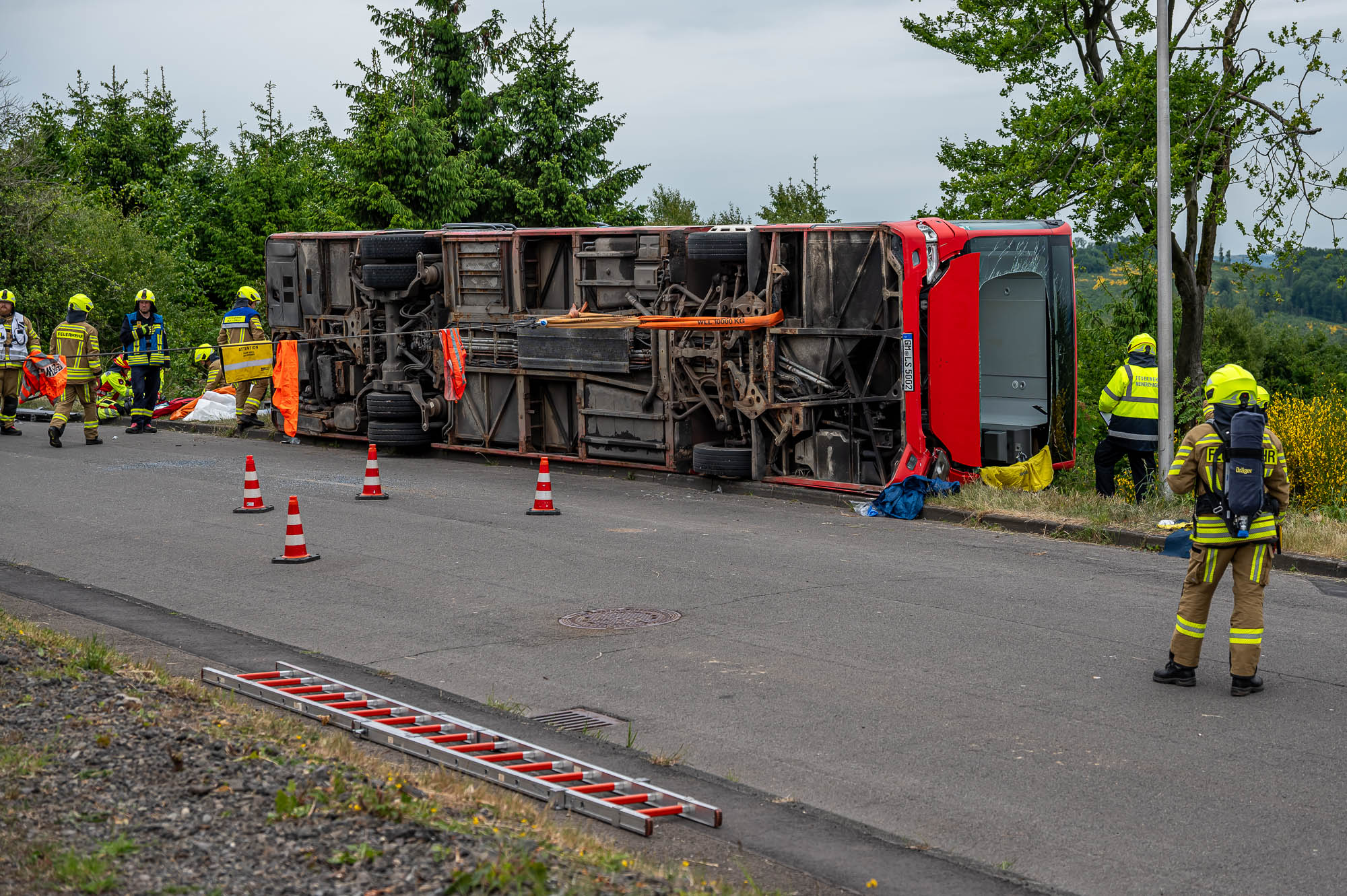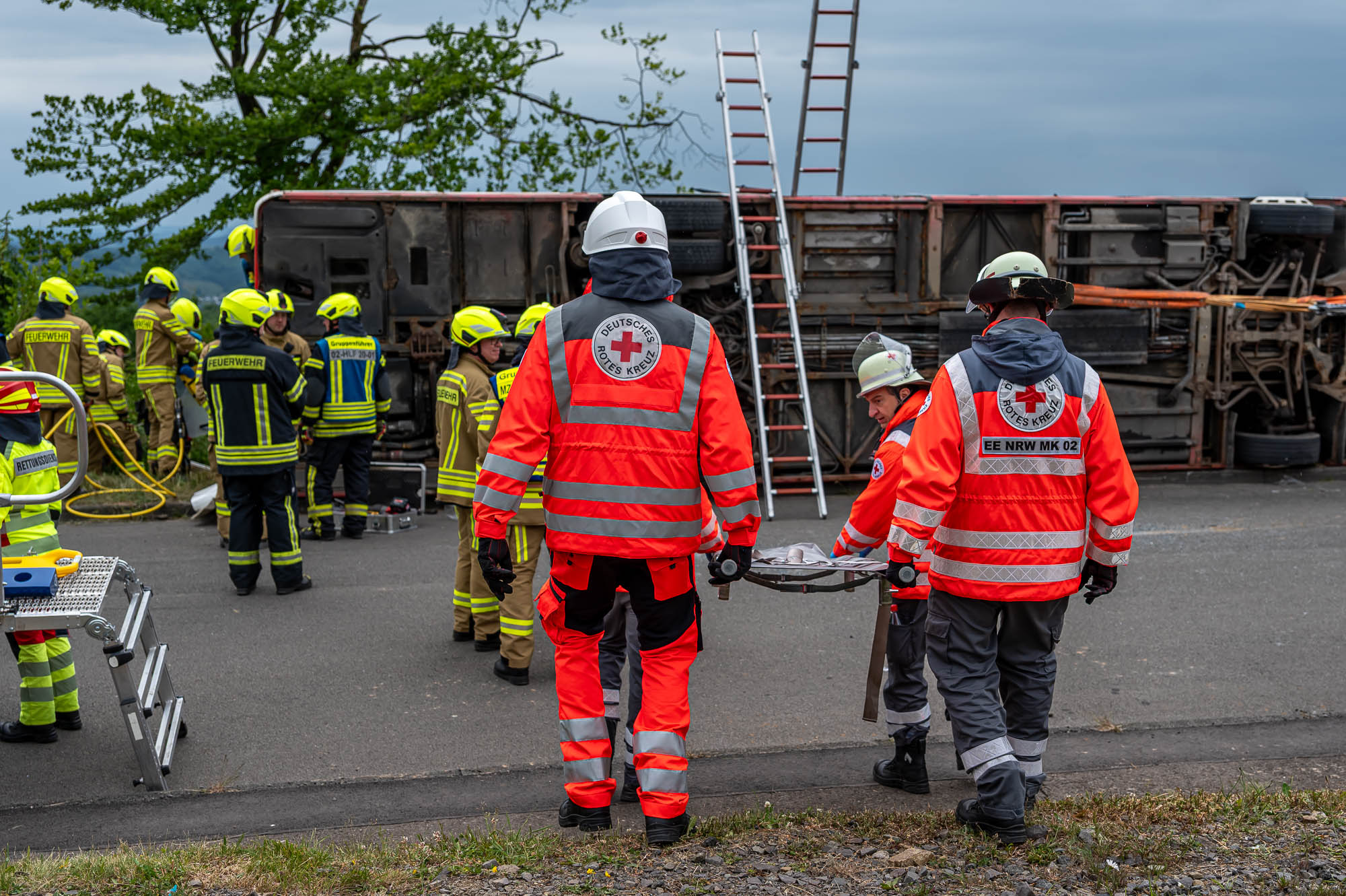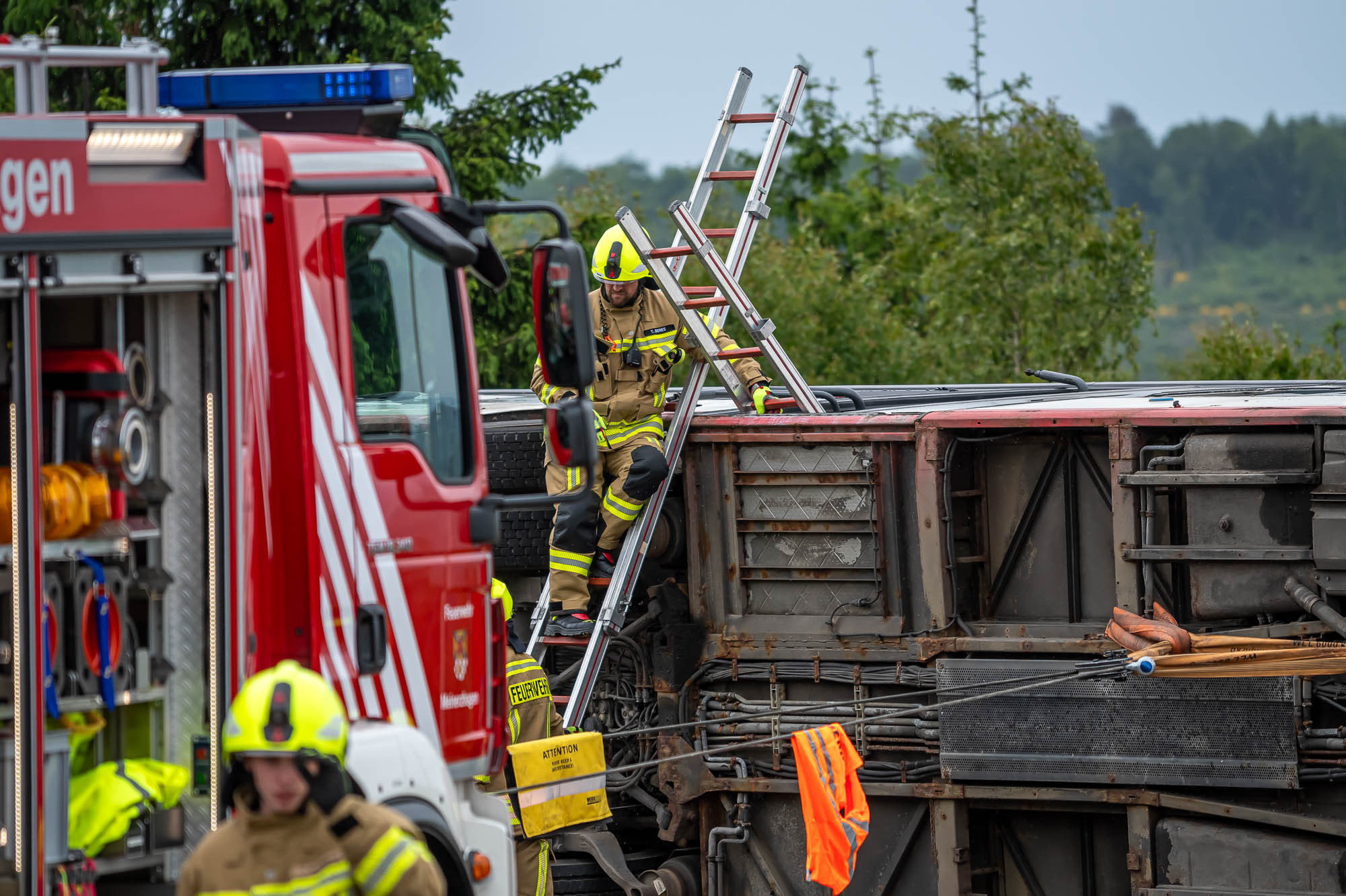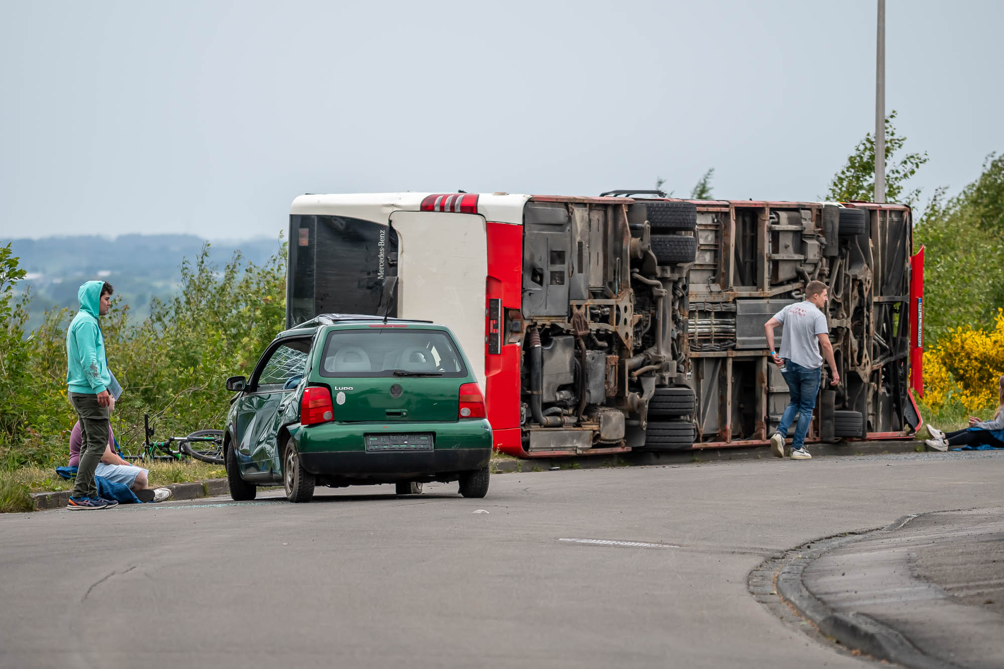 Ein umgekippter Linienbus war nur eine der Herausforderungen für die Rettungskräfte. © Markus Klümper