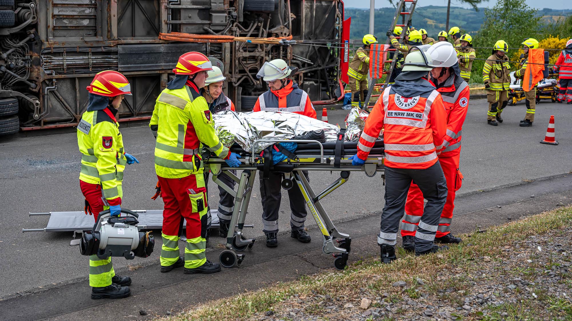 Zahllose Patienten, diesmal glücklicherweise nur Darsteller, mussten versorgt und weggefahren werden.