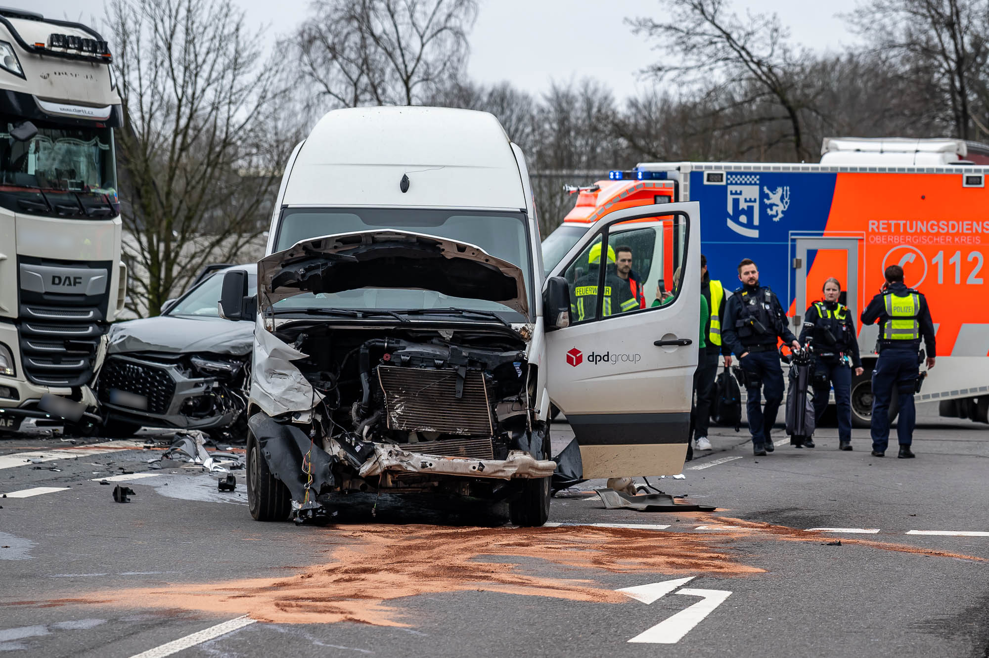 Sowohl der nach Angaben der Polizei noch umfangreich beladene Paketwagen als auch der Audi erlitten Totalschäden. Auch die Zugmaschine des Sattelschleppers war nach dem Aufprall des PKW nicht mehr fahrbereit. Die Polizeibeamten machten sich allerdings Hoffnung, dass das Gespann zumindest rangierfähig geblieben ist, um aus eigener Kraft die Kreuzung verlassen zu können. Der Fahrer des LKW ist unverletzt geblieben.