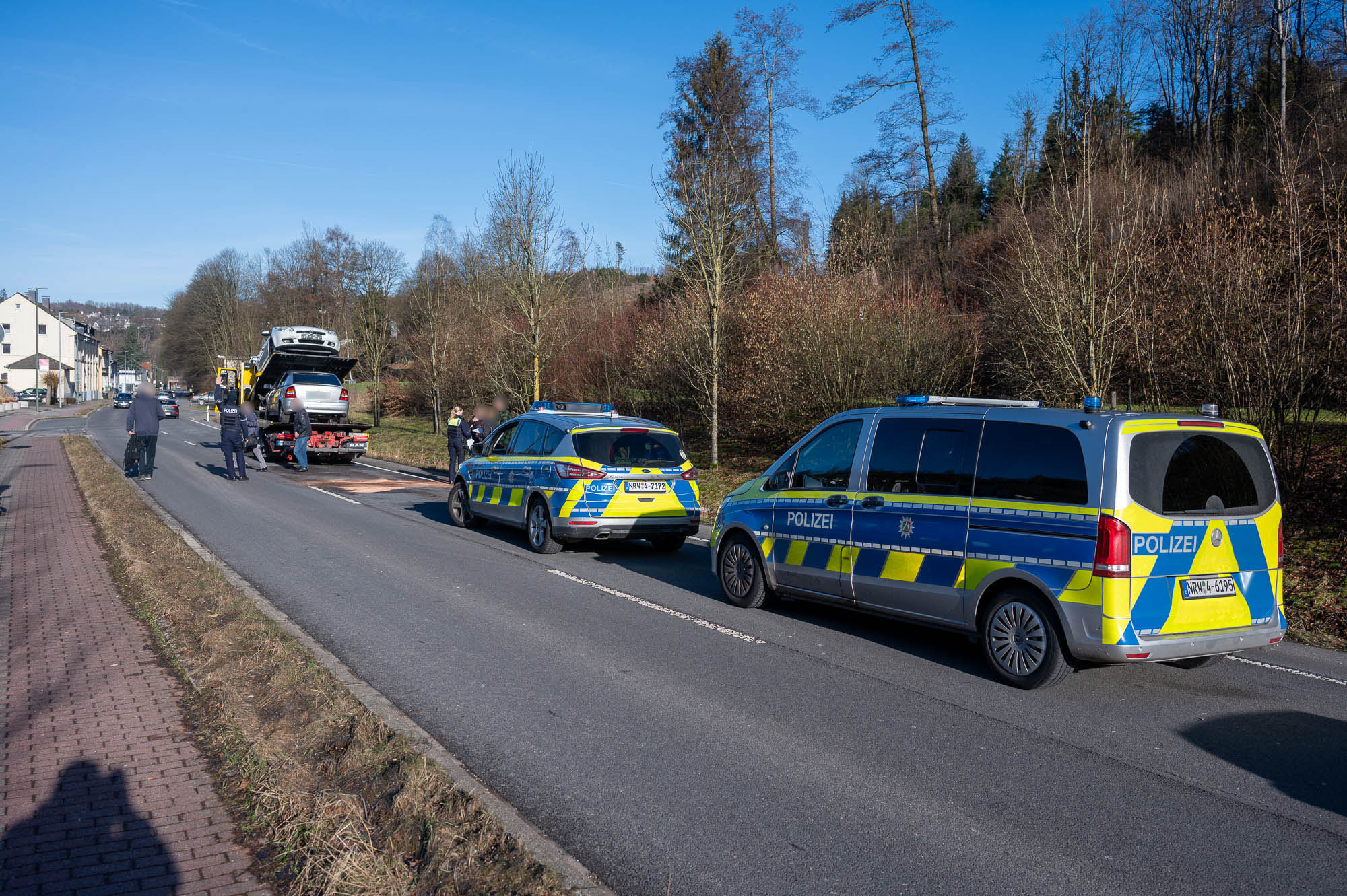Wie es zu dem Unfall kam, kann die Polizei mangels Aussage des Unfallverursachers nur nach Spurenlage beurteilen. Gegen 13.15 Uhr befuhren alle Unfallbeteiligten die B54 in Fahrtrichtung Lüdenscheid. Ein Autofahrer hielt an, um nach links in die Straße “Schiefe Ahelle” abzubiegen. Dafür musste er aber den Gegenverkehr abwarten. Die Autofahrer hinter ihm konnten noch rechtzeitig bremsen. Nicht aber ein älterer Herr im Opel Astra. Der Lüdenscheider hat offenbar zu spät reagiert, wobei ihm die Polizeibeamten zugutehalten, dass eventuell die Bremslichter durch die tiefstehende Sonne schwierig zu erkennen waren.