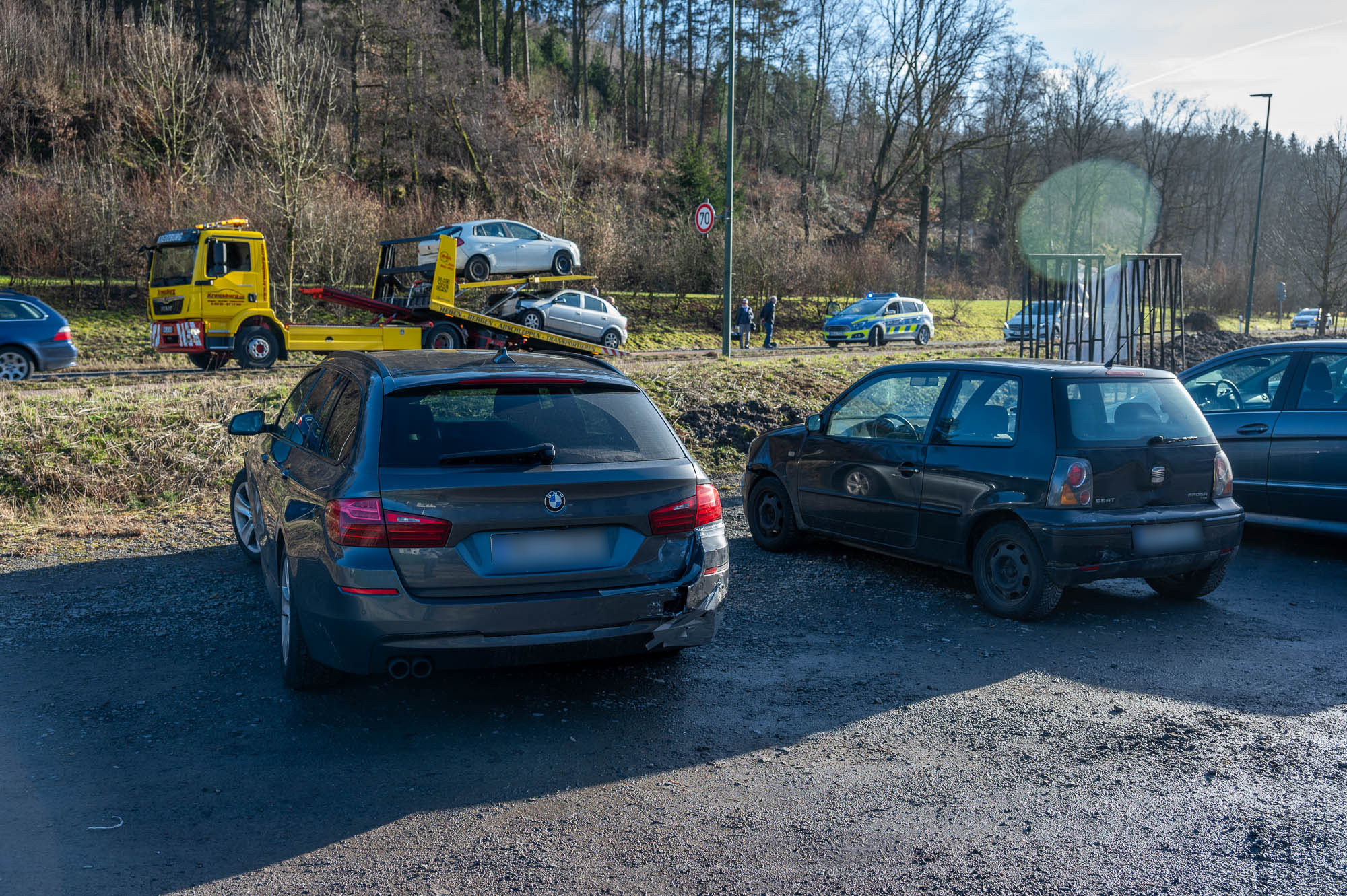 LÜDENSCHEID: Gleich vier Autos sind am Samstagmittag, 27. Januar in einen Auffahrunfall auf der Volmestraße in Höhe Ahelle verwickelt worden. Mindestens zwei davon mussten abgeschleppt werden. Zwei Personen wurden verletzt, aber glücklicherweise wohl nur minimal. Dass der geschätzte Sachschaden mit ingesamt rund 10.000 Euro relativ überschaubar ausfällt, liegt daran, dass es sich bei drei der betroffenen Fahrzeuge um eher kleine, vor allem ältere Autos handelt. Bei drei Autos wird von Totalschaden ausgegangen.