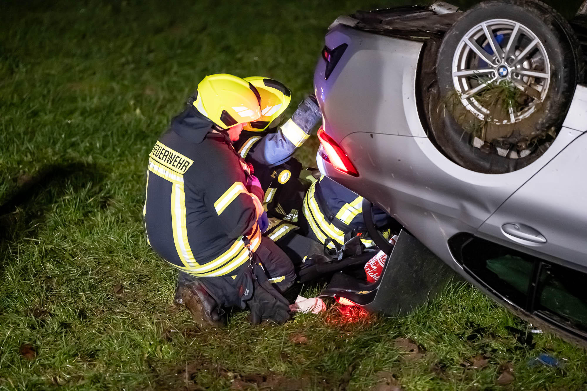 Die beiden Insassen saßen zu diesem Zeitpunkt bereits in einem anderen Auto, wo sie von couragierten Ersthelfern betreut worden sind.